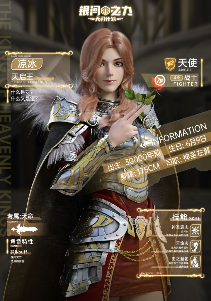追寻知识奥秘的她正义与邪恶只在一念之间【人物经历】天启王凉冰,是天使文明的天使,神圣凯莎的妹妹,曾和天基王鹤熙,天刃王神圣凯莎合力推翻了华烨的统治,建立了新的天使文明。随着天使文明的不断发展,与神河文明建立起了超神学院,凉冰放弃了战士与领袖之路,进入超神学院,成为一名学生,为了学习更多宇宙知识,探索宇宙未来之路。由于凉冰智慧过人,以及时间的积累,她很快就成了学院的导师。同为超神学院里的导