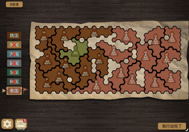 每回合结束,每块棋格上的部队士兵会恢复一定数量,也就是说,占领的地盘越多,士兵数量和战斗力就越强。