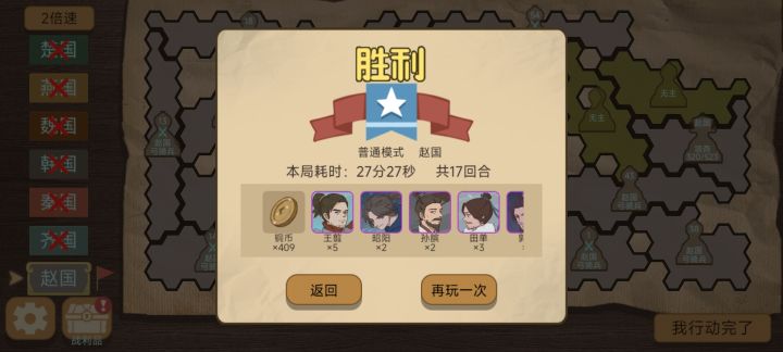 这游戏怎么说呢,通关一般般,你们说难的赵三我用的项燕白起和吴起如姬通的,慢慢卡位置轮流抗伤就可以过,不过我也是试了十几遍才整对顺序,我打通了现在铜币来的好慢,乐毅又削了,一堆不是满级的看的难受😣