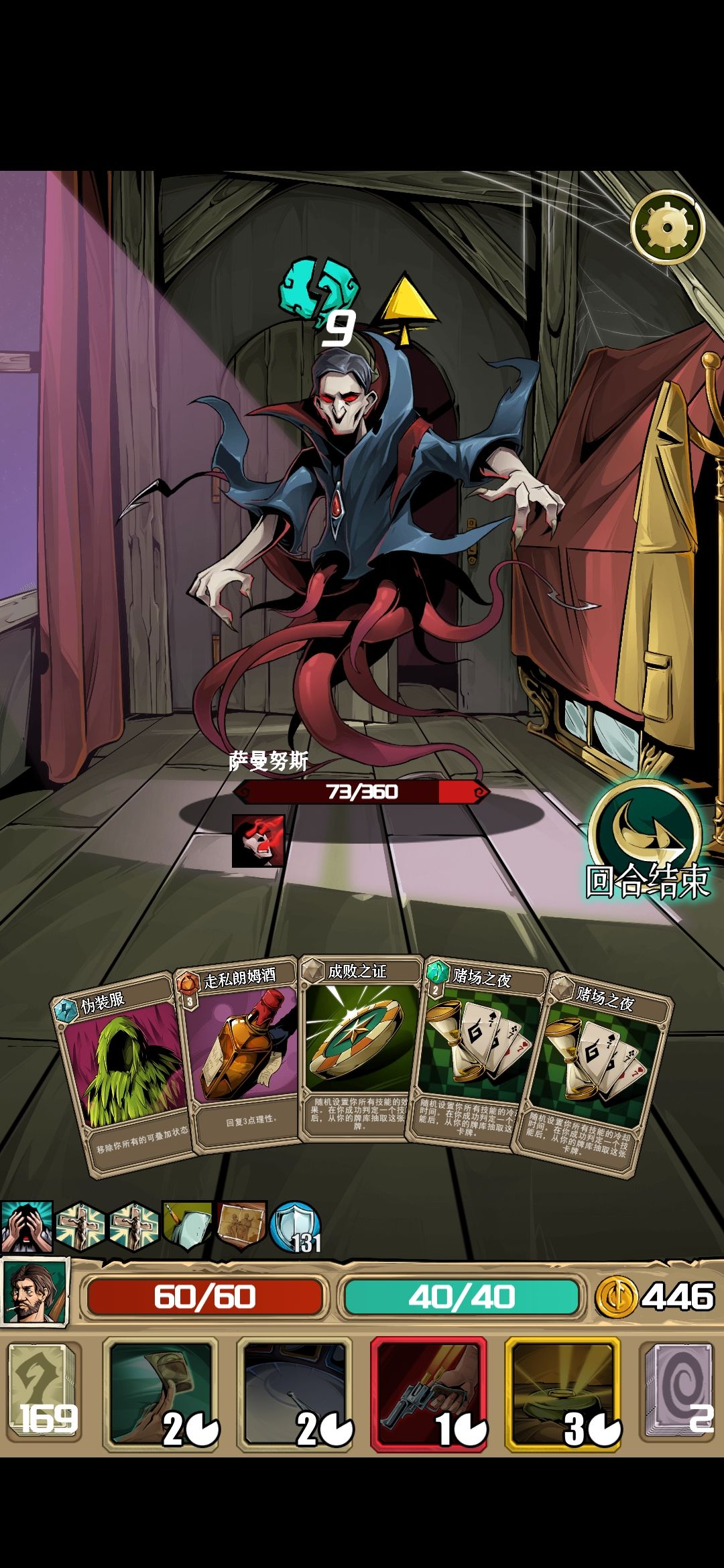 两张赌场+高成功率技能=一回合无限连BOSS卒。 细节: 一张赌场附魔了回响,实际使用时会复制多出一张回响1的赌场。3张赌场来回滚。 技能只要是高成功率的伤害技能都可以。这把有个地雷战,刷出一牌堆的手雷😂。 这把第一个拿到的技能其实是9CD 100%成功率的红技能,额外效果是每回合造成CD数的伤害。在拿到赌场之前都是拿加CD的牌来围绕它构筑的。 拿到两张赌场后,害!随便玩儿!