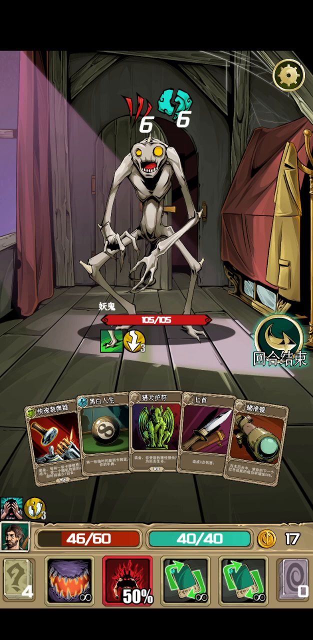 这里只给最终效果,“再见了武器”可以用“致命烟盒”替代,记得叠上易伤。 ps:银钥匙贼重要 (可以返回主菜单刷新商店)