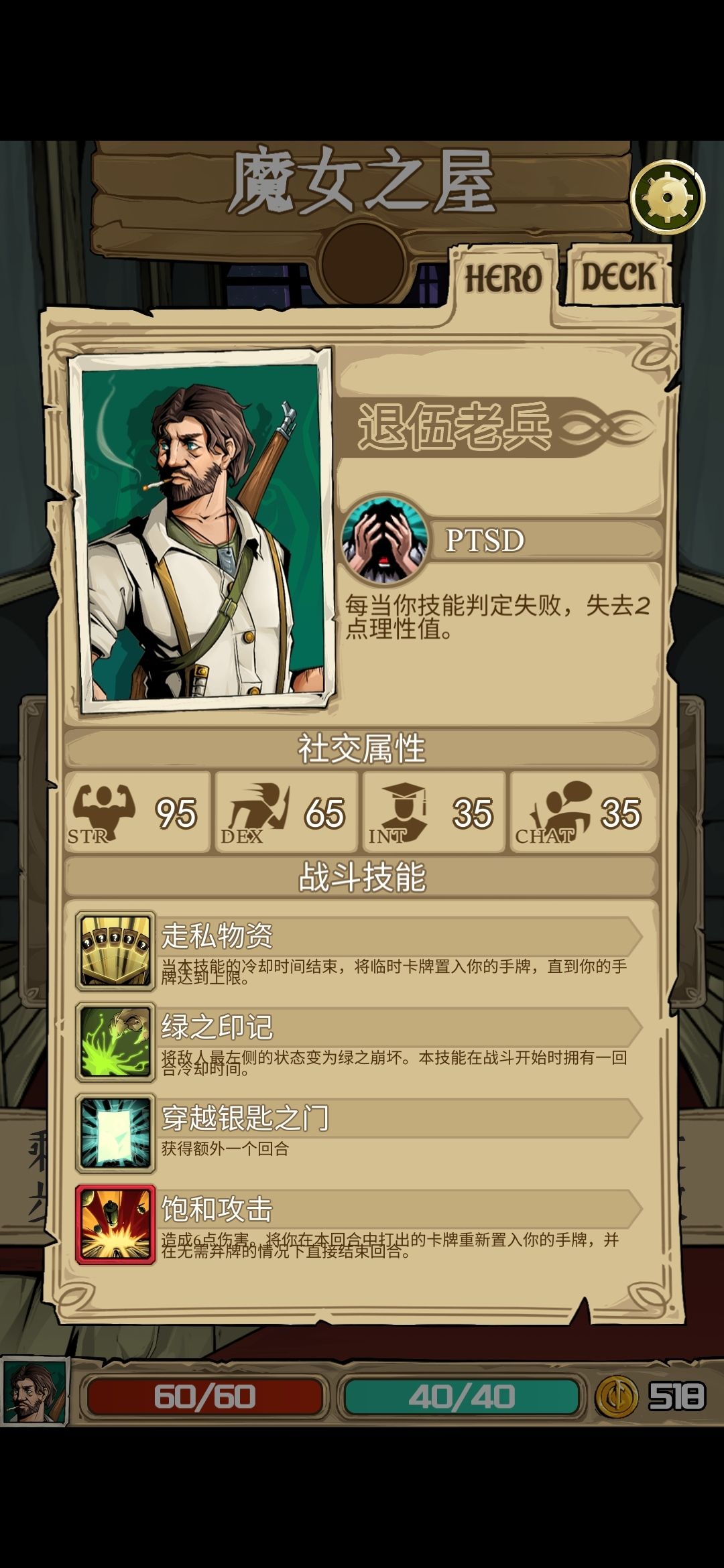 标题党,其实是技能太好了,吃了药。 核心是抽牌技能(抽的牌都很好),大崩溃还是什么,一张牌5伤害,一个绿之标记,还有装备不用弃牌那个和理智伤害变血量,剩下的两把小刀带个回复就够了,其它牌都是多余的因为前期没选好牌,后面丢不掉,可以简化到四技能4牌过关