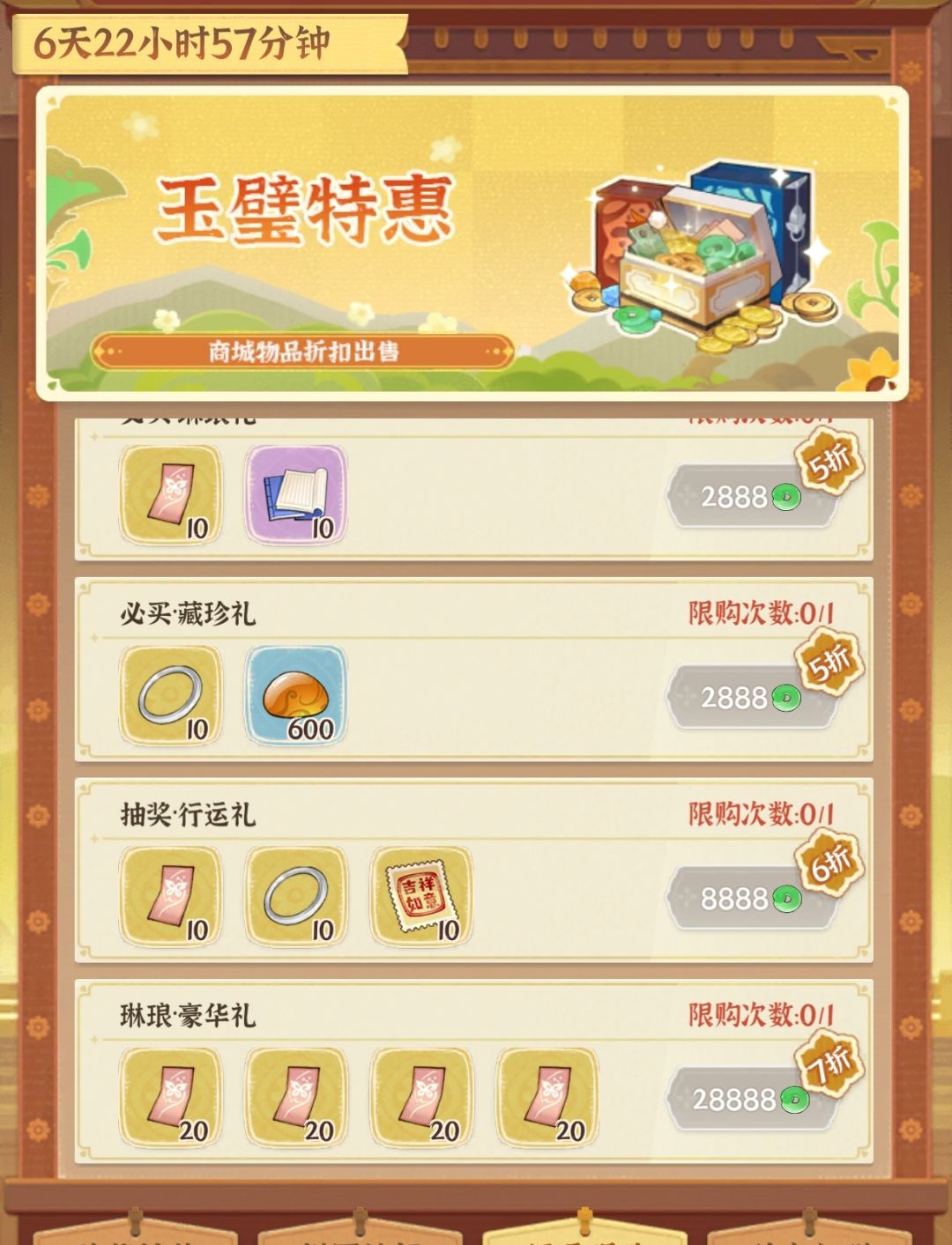 1.销售 ·通过售卖生成和加工的物品获取通宝。 2.广济 ·提交常规的订单获取通宝。 3.通宝赞助 ·当提示“您的通宝不足哦~”时,会在书简珍藏下出现,需要使用通宝购买,个人觉得花500通宝买也很值。一天至少能买三次,大概间隔5分钟。 4.广告赞助 ·市集-广告,看广告后可以获得40w通宝,可用广告券直接完成。每天可以领取一次。 5.日常任务 ·任务做完可以获得大概17w通宝 ··完成一次销冠——