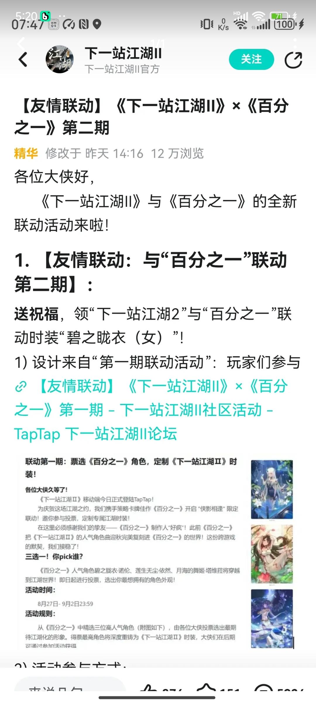 送祝福,领《下一站江湖Ⅱ》和《百分之一》联动时装”