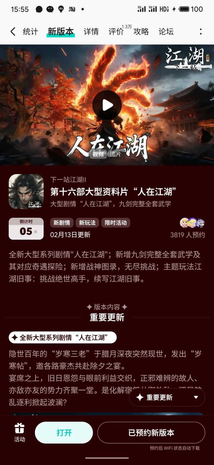 参与人在江湖预约活动免费获得武器特效和外观礼包