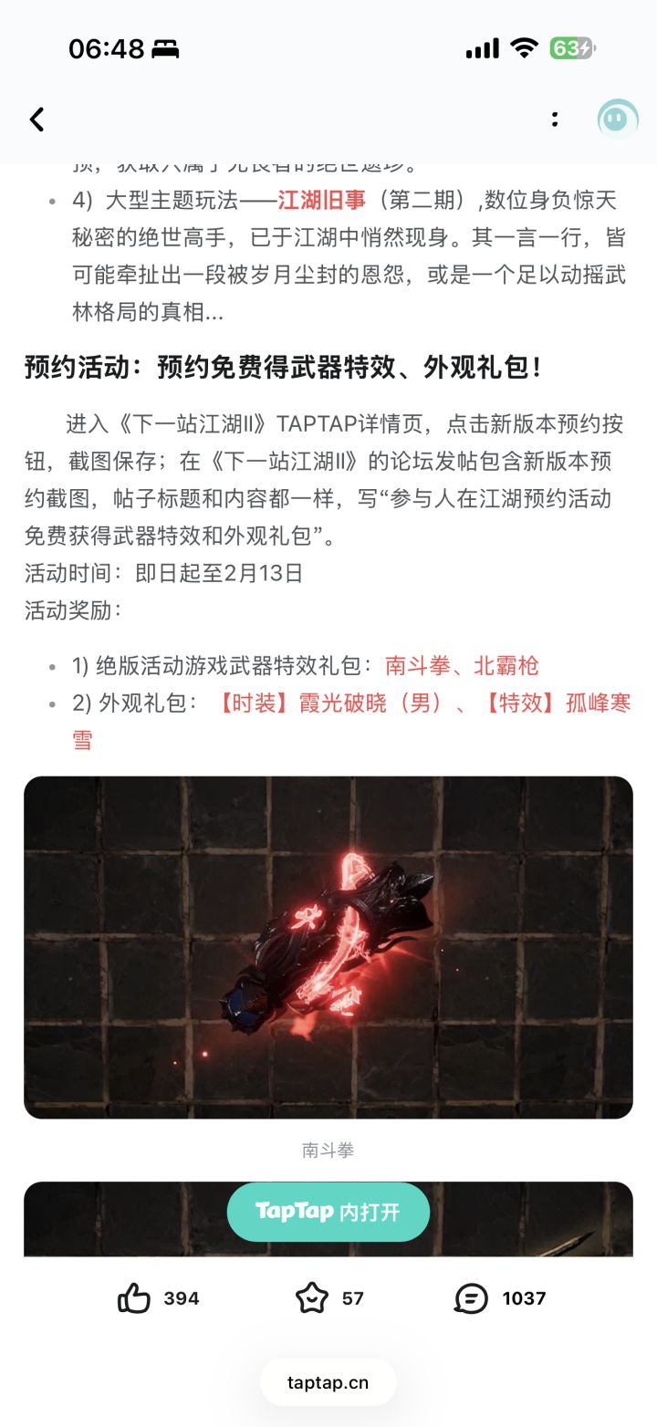 参与人在江湖预约活动免费获得武器特效和外观礼包
