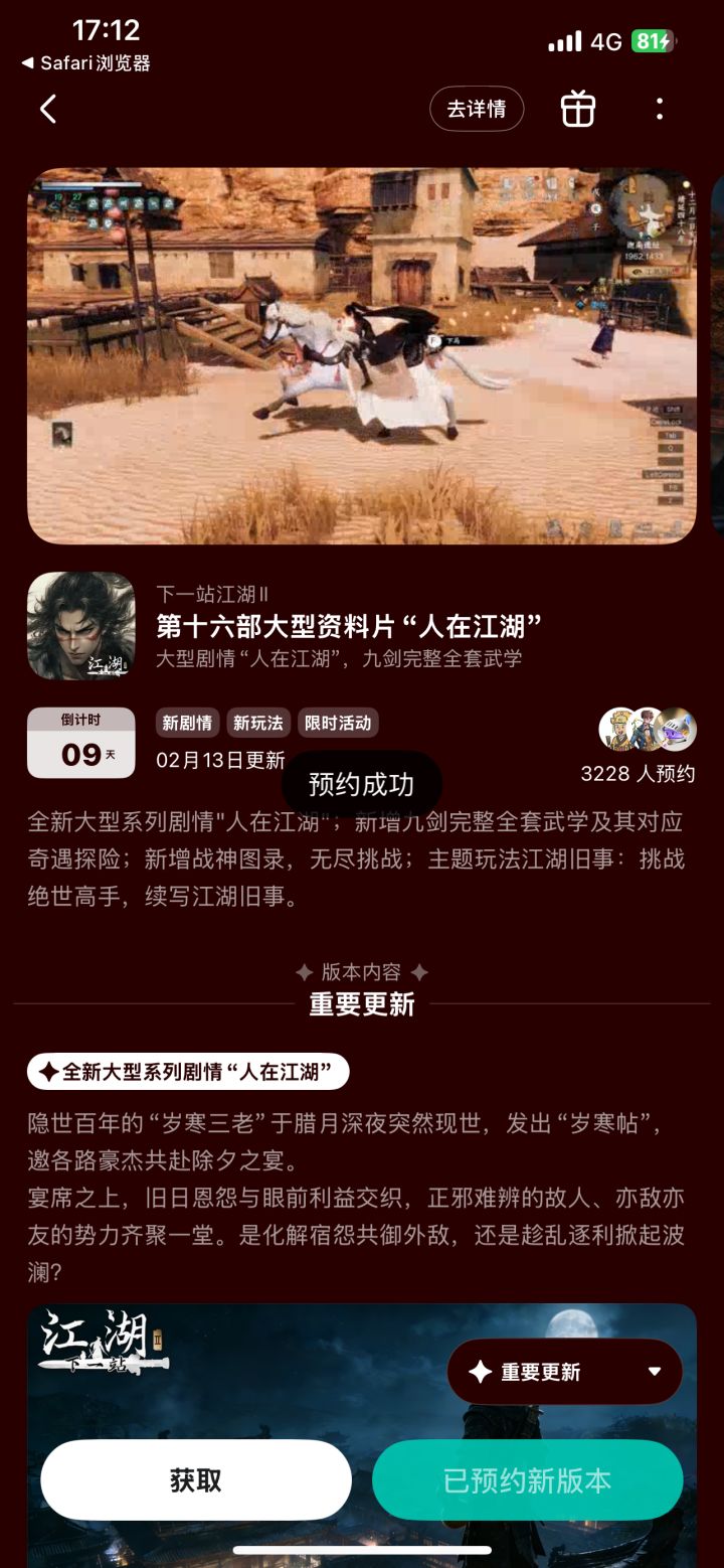 各位大侠好, 马踏祥云,福运临门!感谢大家又一年的相伴与支持! 在这辞旧迎新之际,我们为各位大侠准备了新春福利活动,诚邀大家共聚 TapTap,写下您的新春祝福,参与抽奖。活动时间: 即日起至2026年2月23日 23:59活动详情: 活动期间内,关注游戏《下一站江湖Ⅱ》,并在本活动帖下方评论区留下您对《下一站江湖Ⅱ》或白玉京工作室的新春祝福或新年期待,即可参与抽奖。活动奖励: 系