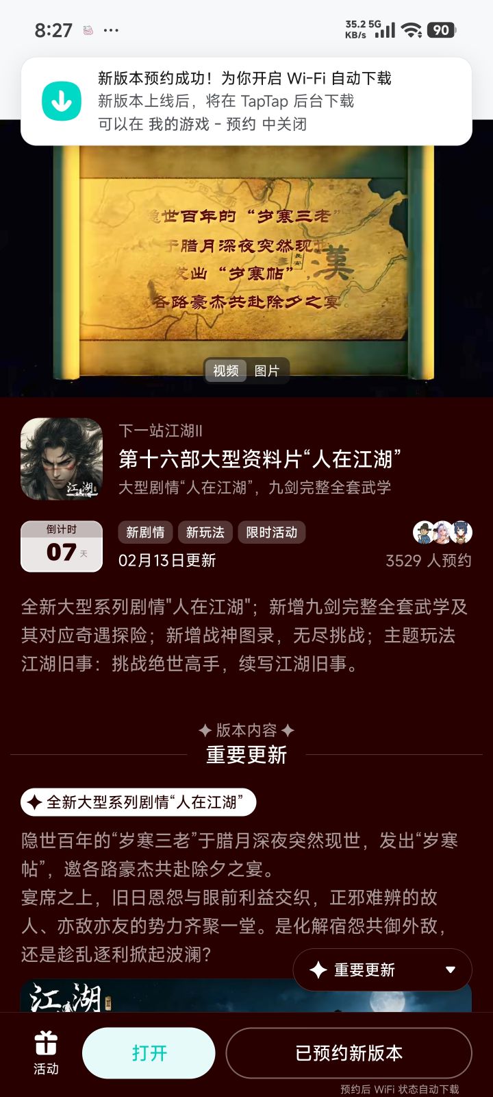 参与人在江湖预约活动免费获得武器特效