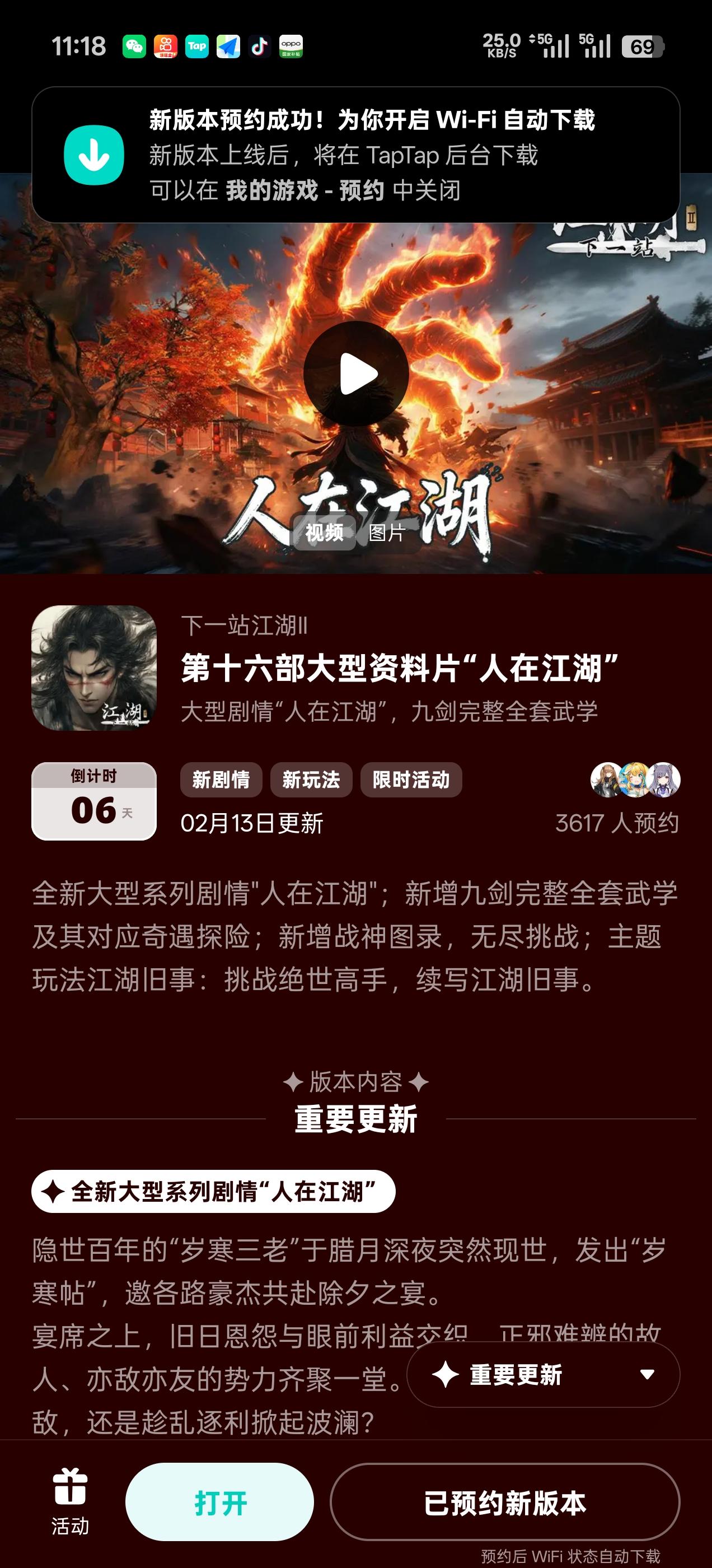 参与人在江湖预约活动免费获得武器特效和外观礼包
