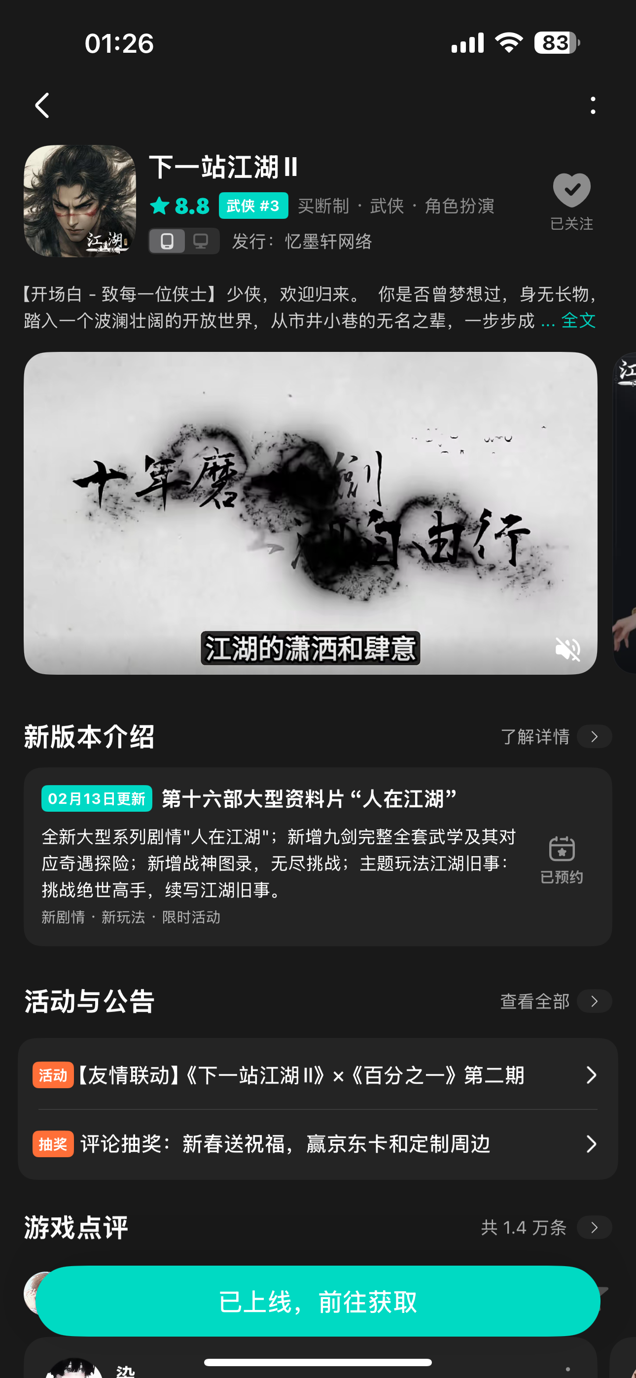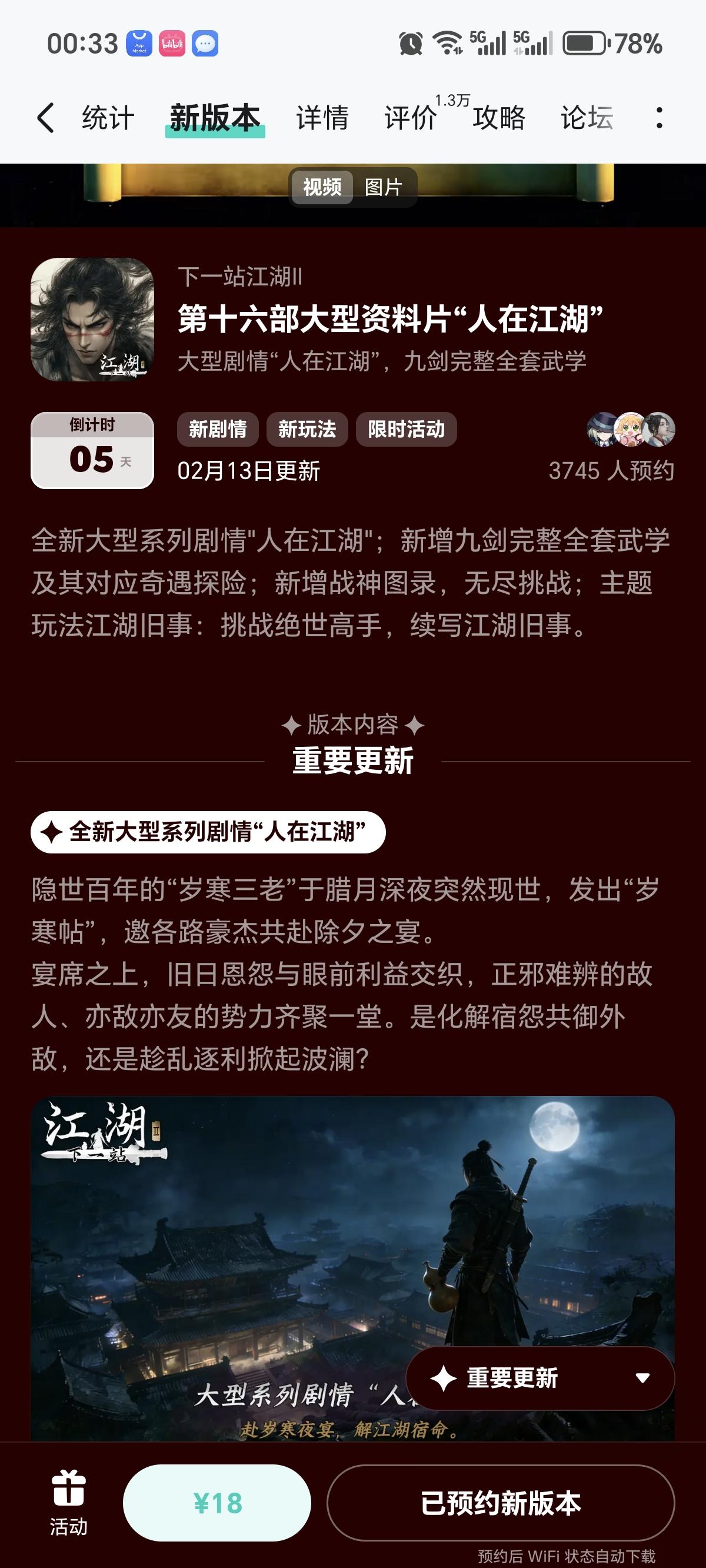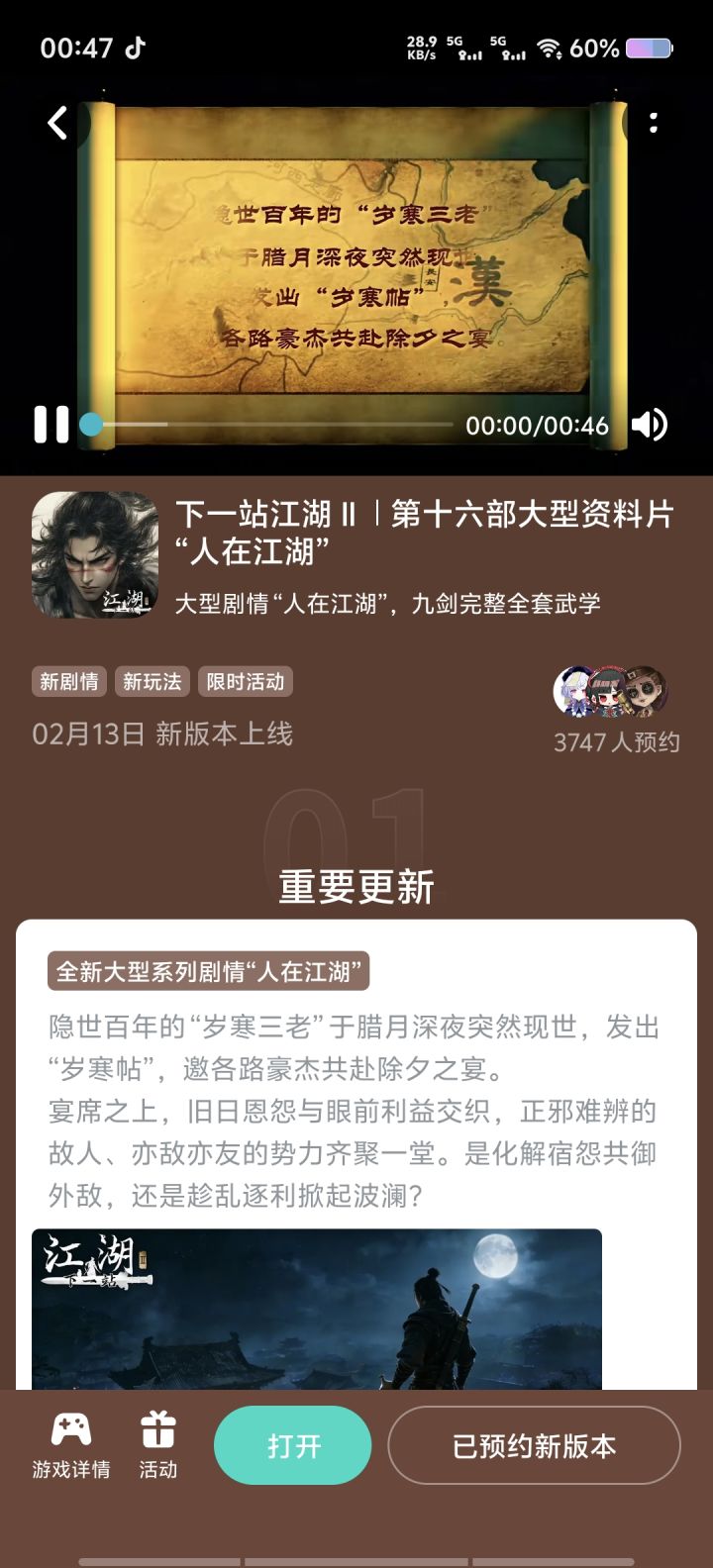 参与人在江湖预约活动免费获得武器特效和外观礼包