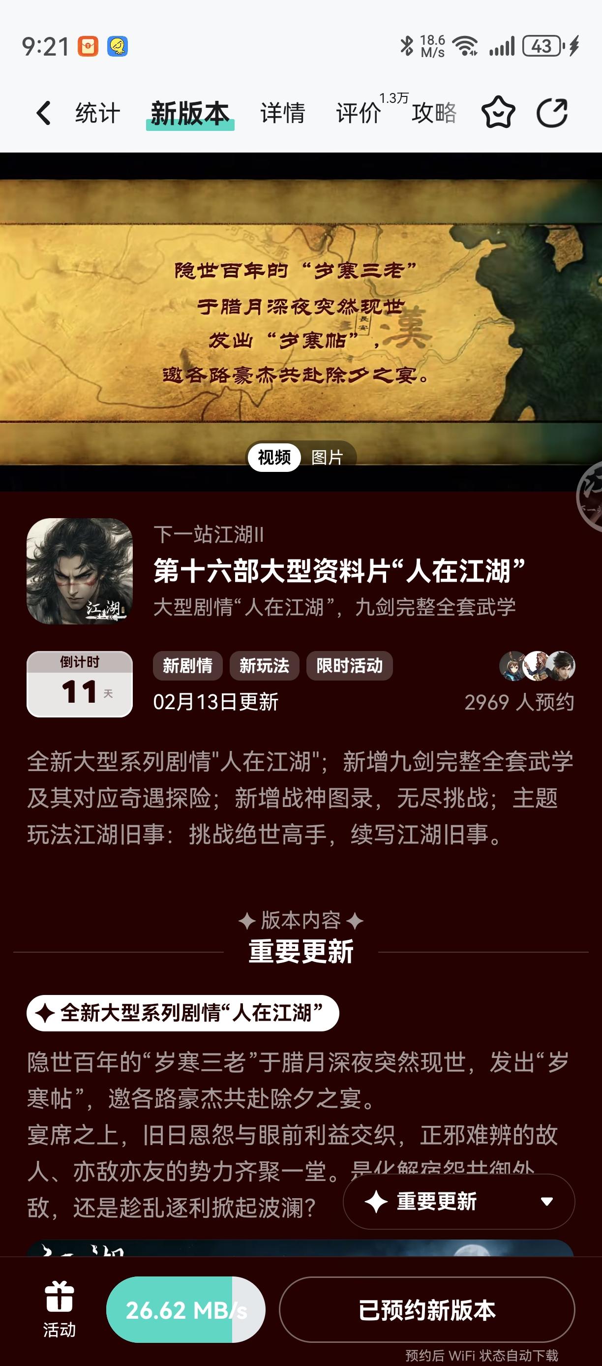 参与人在江湖预约活动免费获得武器特效和外观礼包