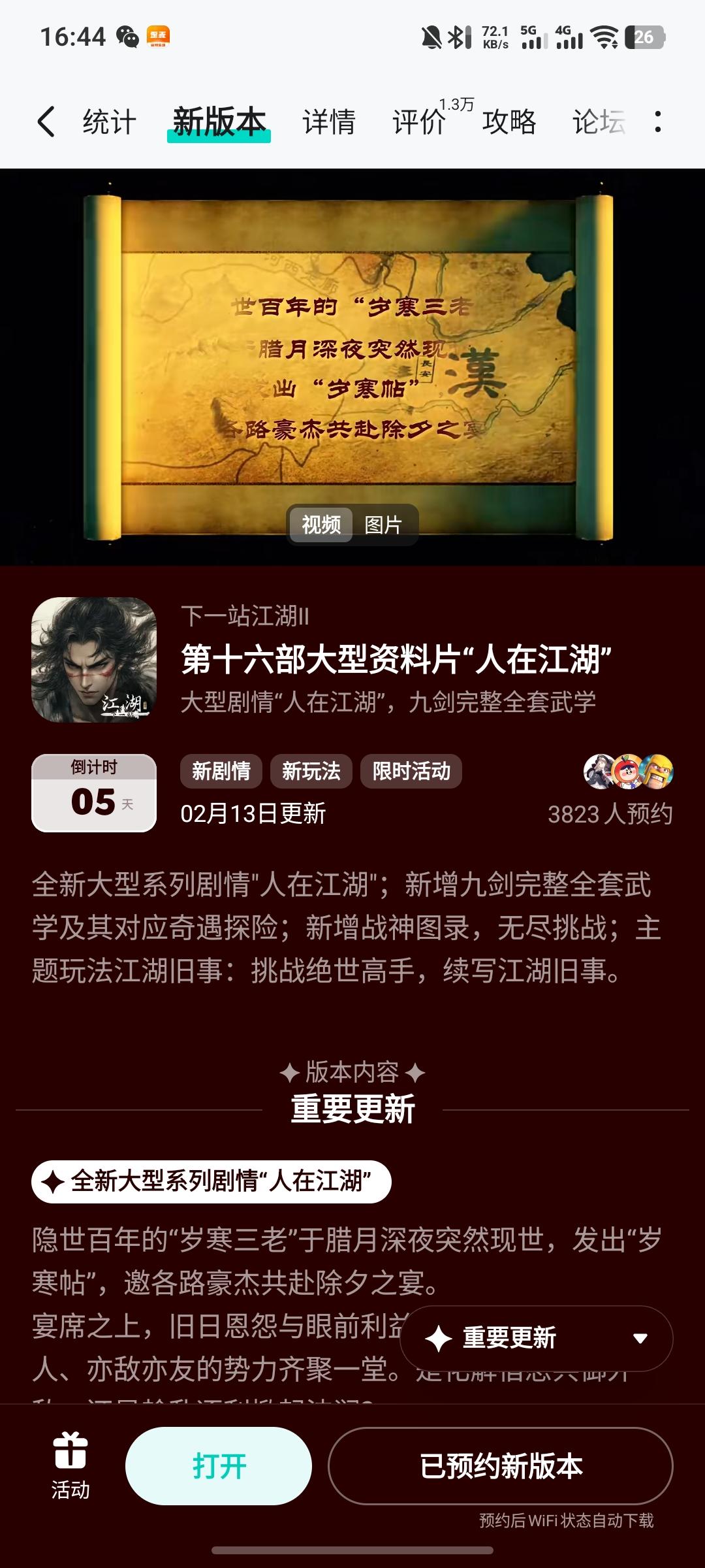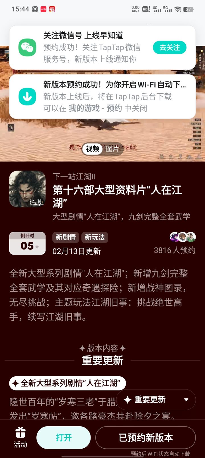 参与人在江湖预约活动免费获得武器特效和外观礼包。