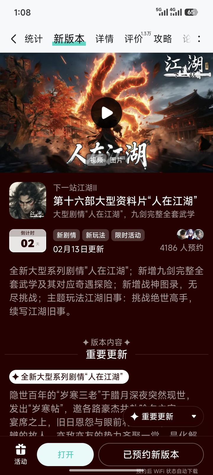 各位大侠好, 马踏祥云,福运临门!感谢大家又一年的相伴与支持! 在这辞旧迎新之际,我们为各位大侠准备了新春福利活动,诚邀大家共聚 TapTap,写下您的新春祝福,参与抽奖。活动时间: 即日起至2026年2月23日 23:59活动详情: 活动期间内,关注游戏《下一站江湖Ⅱ》,并在本活动帖下方评论区留下您对《下一站江湖Ⅱ》或白玉京工作室的新春祝福或新年期待,即可参与抽奖。活动奖励: 系