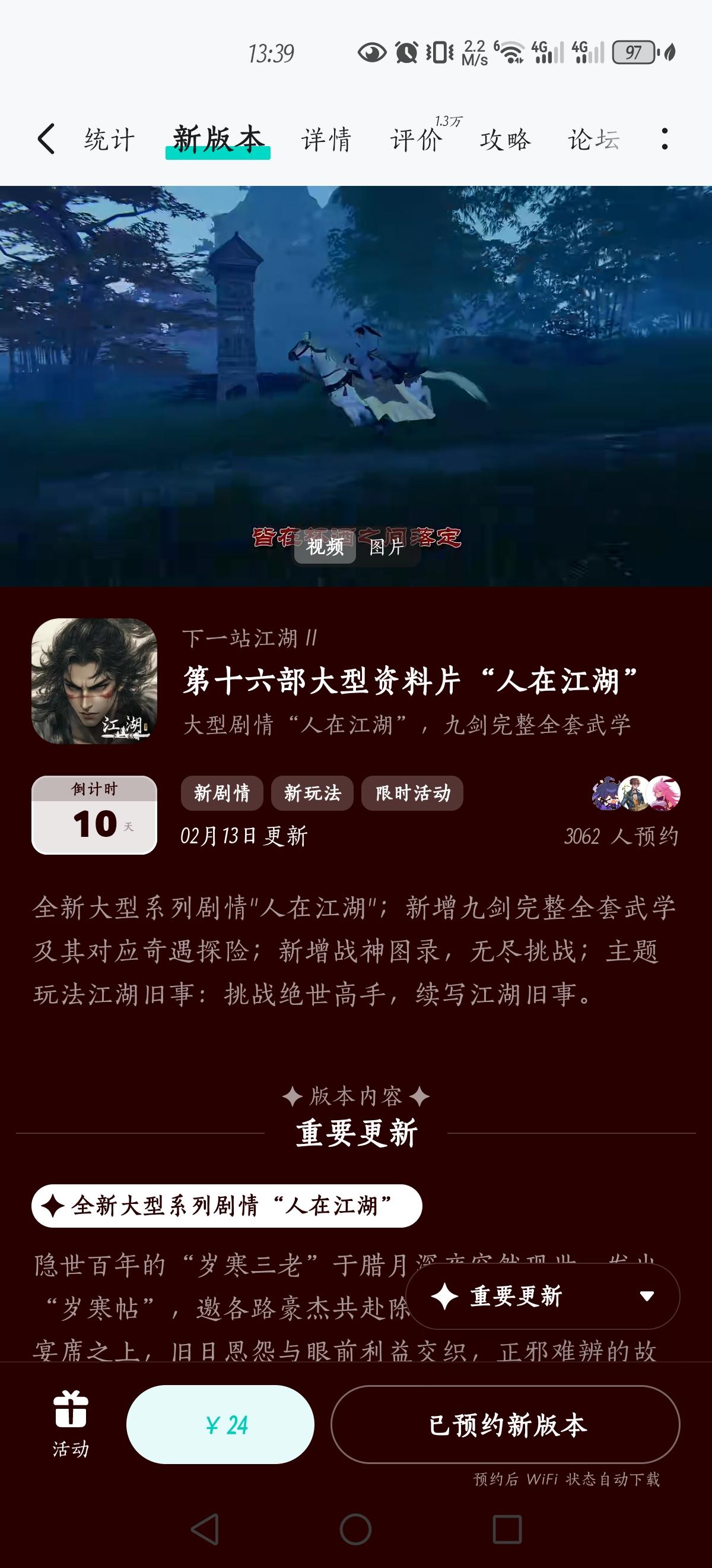 参与人在江湖预约活动免费获武器特效和外观