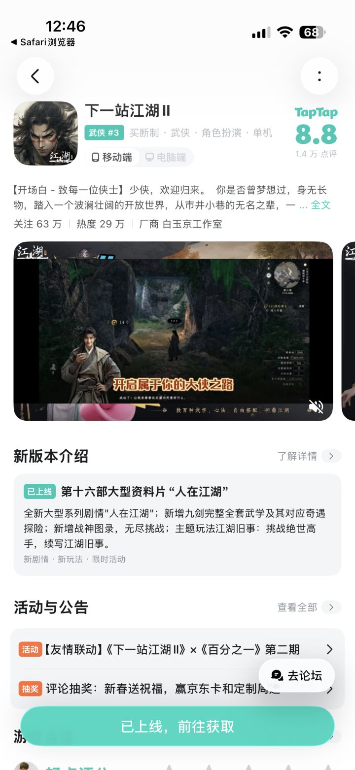 《下一站江湖Ⅱ》贺岁资料片暨第十六部大型免费玩法资料片“人在江湖”发布各位大侠好, 纵马江湖间,福运自绵延!马年新春,我们为大家奉上《下一站江湖Ⅱ》第十六部大型免费玩法资料片“人在江湖”。 白玉京全体成员在此预祝大侠们马年新春快乐!一马当先,好运连连;马到成功,心想事成! 《下一站江湖Ⅱ》第十六部大型免费玩法资料片“人在江湖”暨移动端38更、PC端155更公告更新时间:2026年2月13