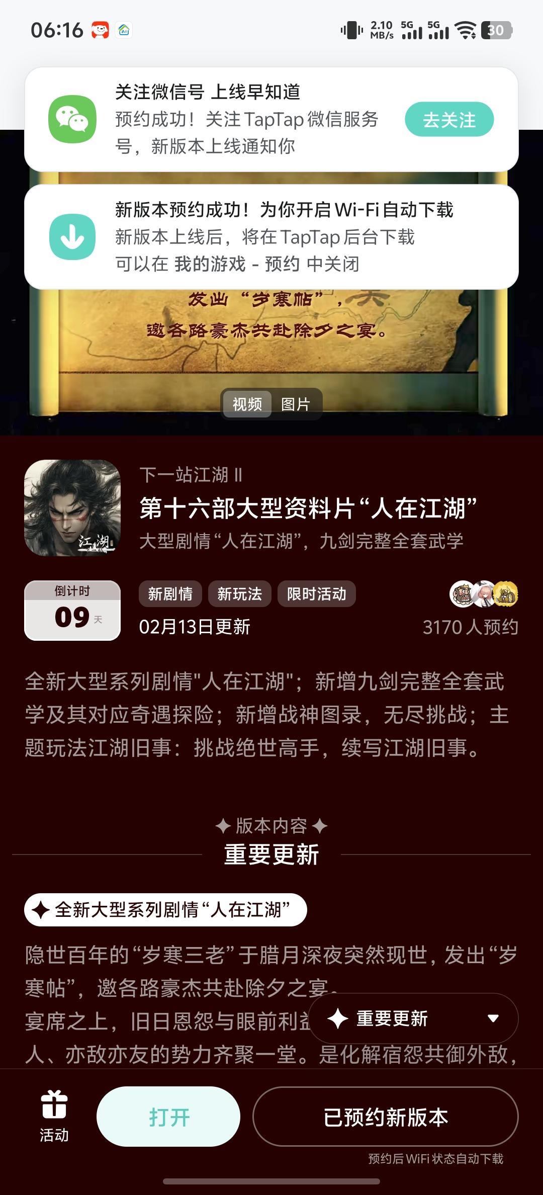参与人在江湖预约活动免费获得武器特效和外观礼包