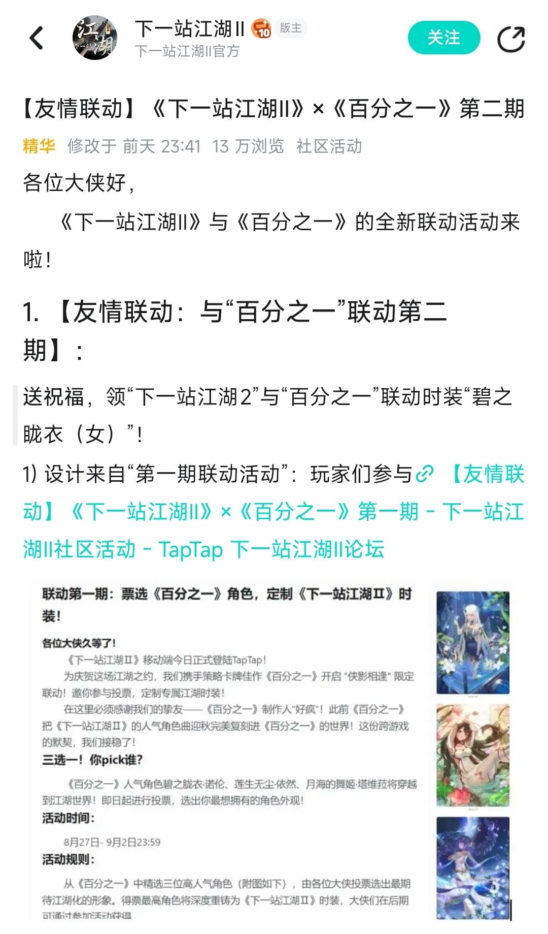 送祝福,领下一站江湖Ⅱ和百分之一联动时装