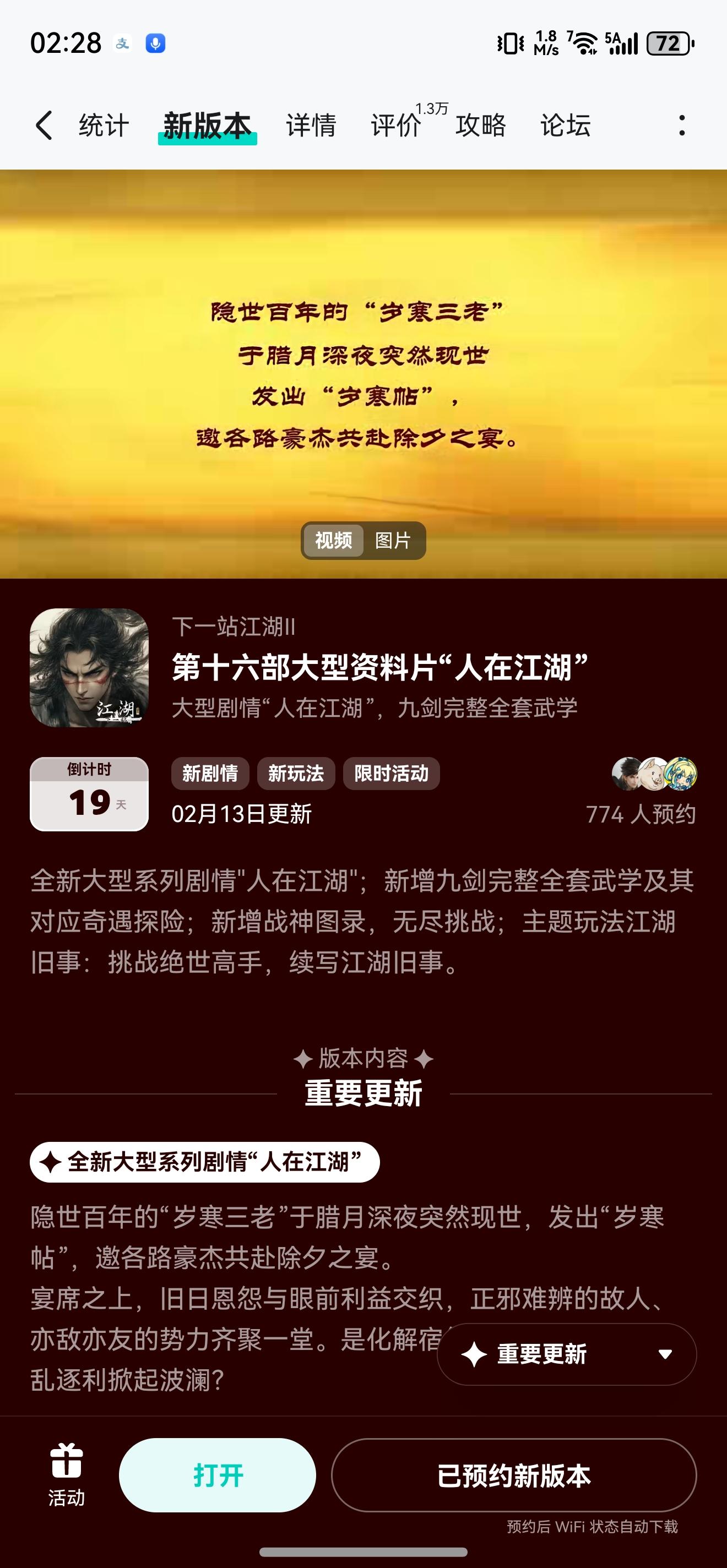 “参与人在江湖预约活动免费获得武器特效和外观礼包”