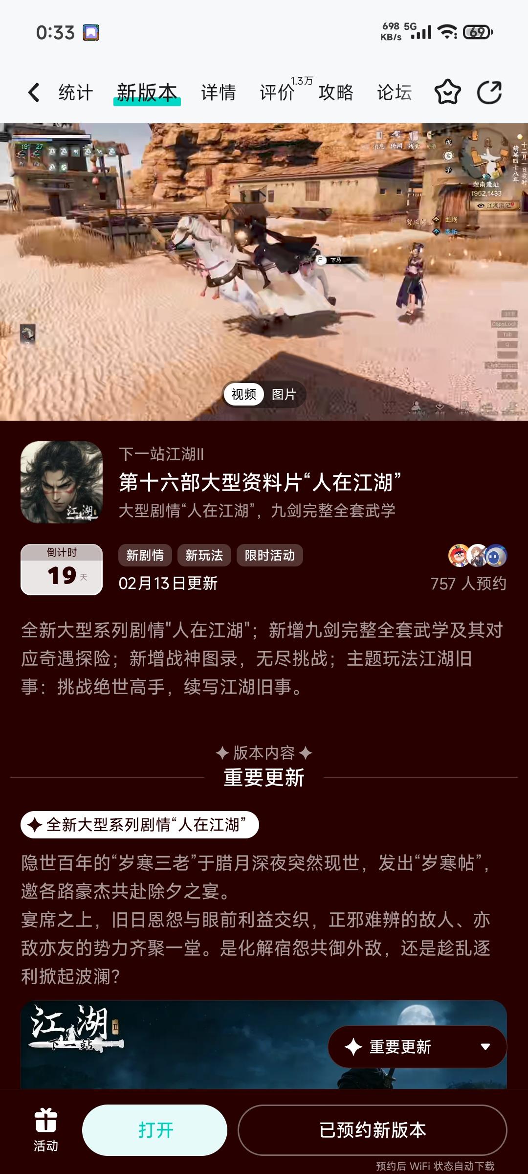参与人在江湖预约活动免费获得武器特效和外观礼包