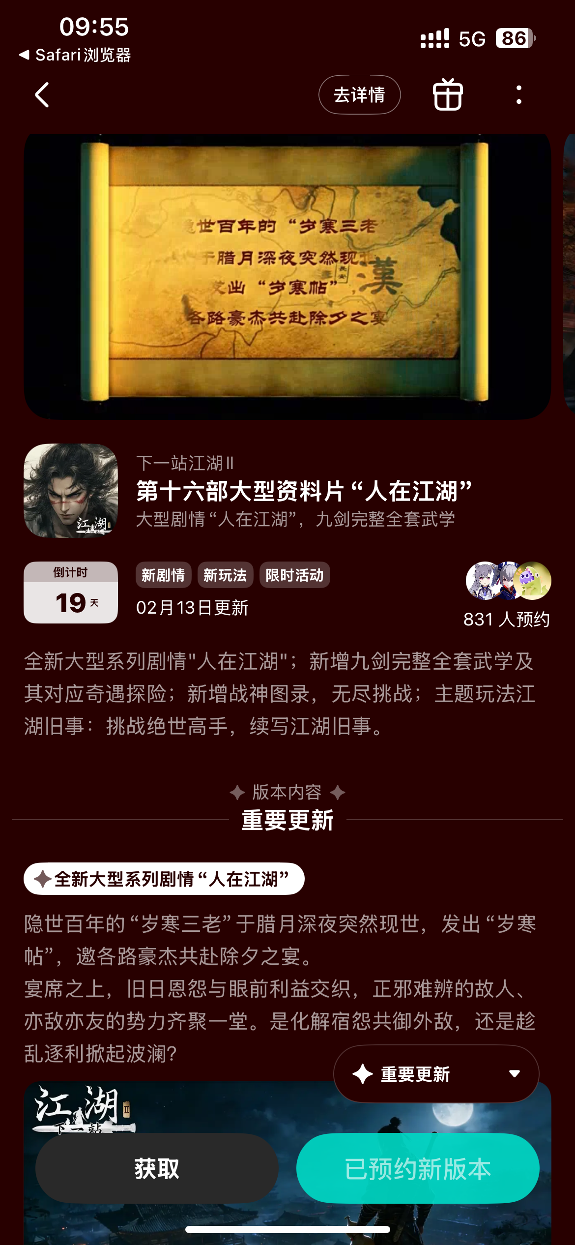 参与人在江湖预约活动免费获得武器特效和外观礼包”。 来自TapTap[ID:108579740 仅仅是如果]