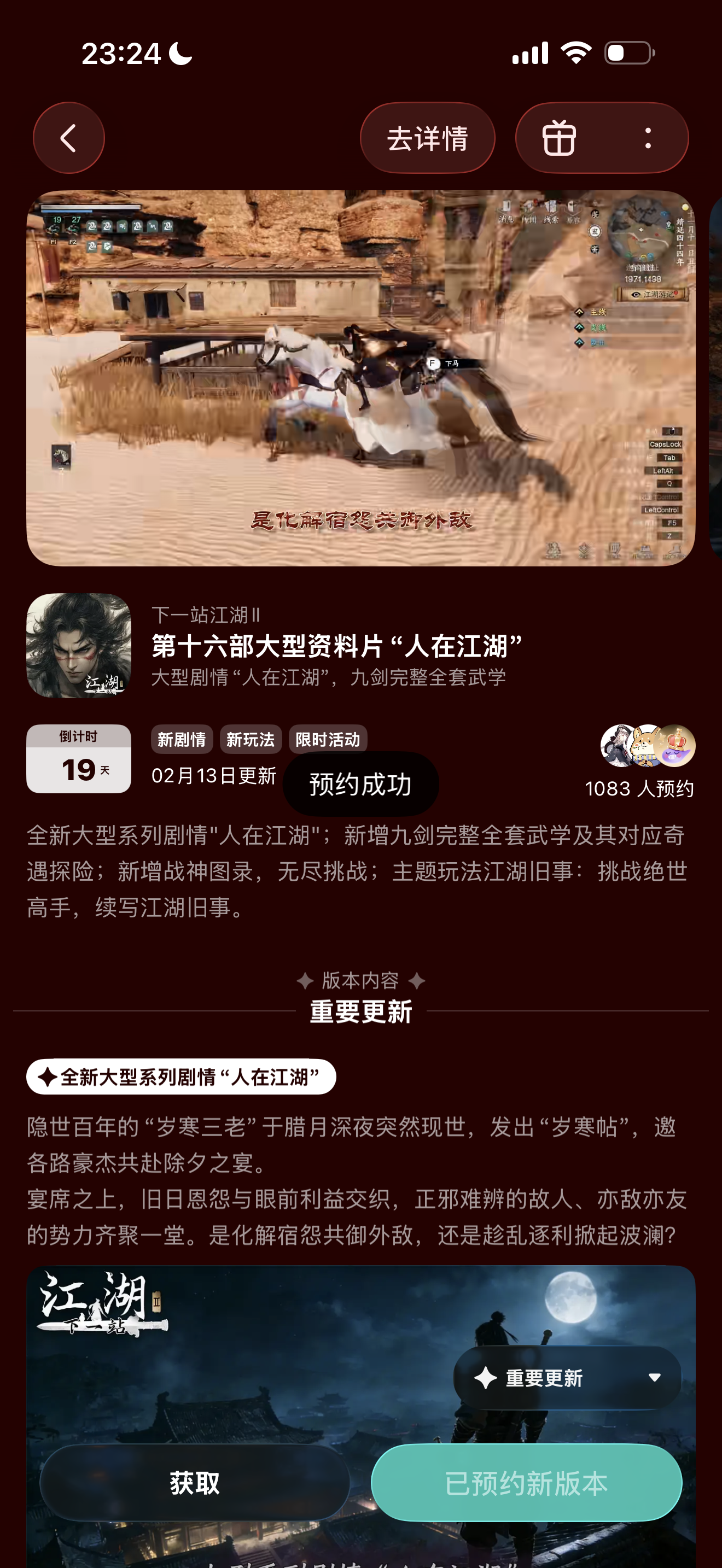 参与人在江湖预约活动免费获得武器特效和外观礼包