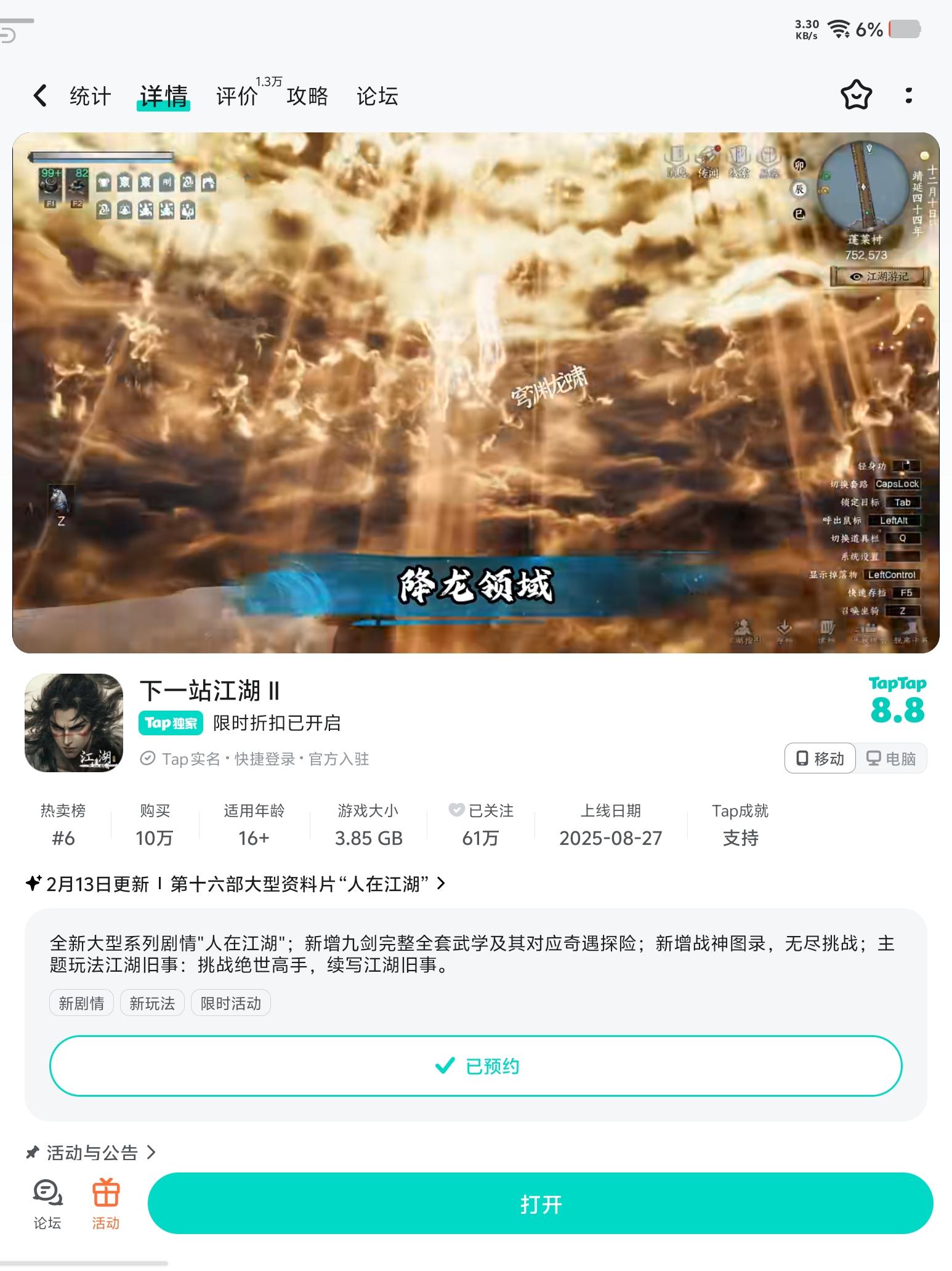 参与人在江湖预约活动免费得武器特效和外观