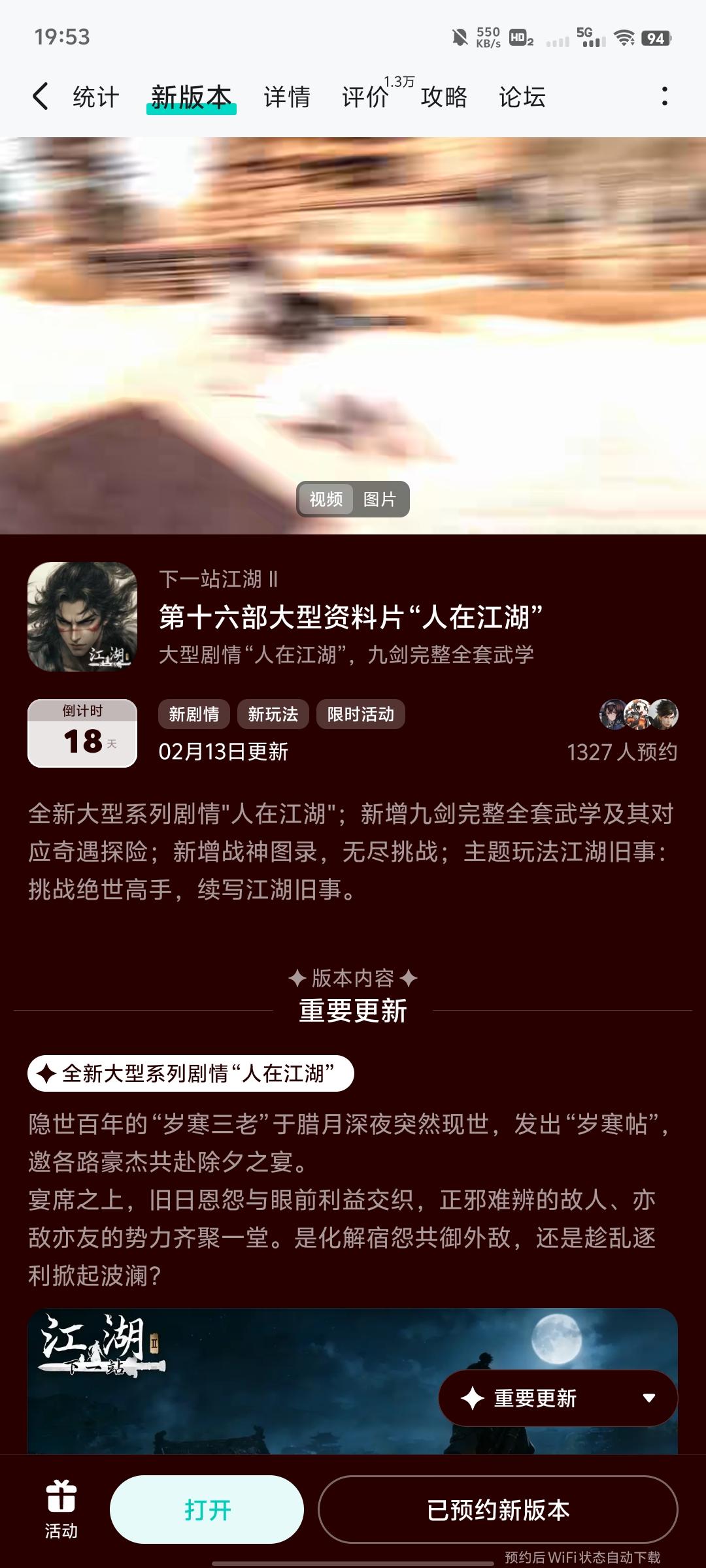 参与人在江湖预约活动免费获得武器特效和外观礼包