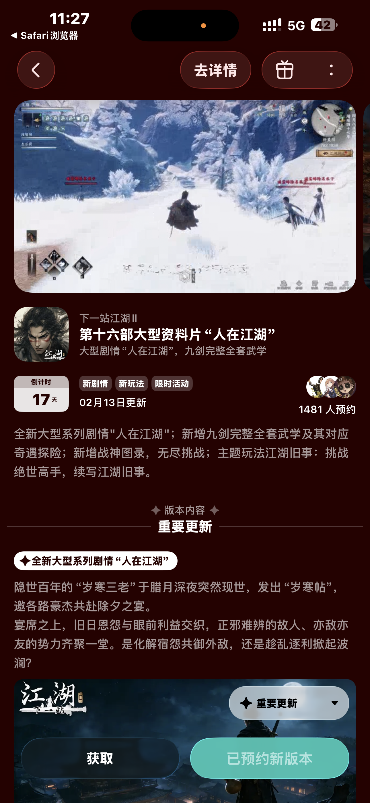 参与人在江湖预约活动免费获得武器特效和外观礼包”