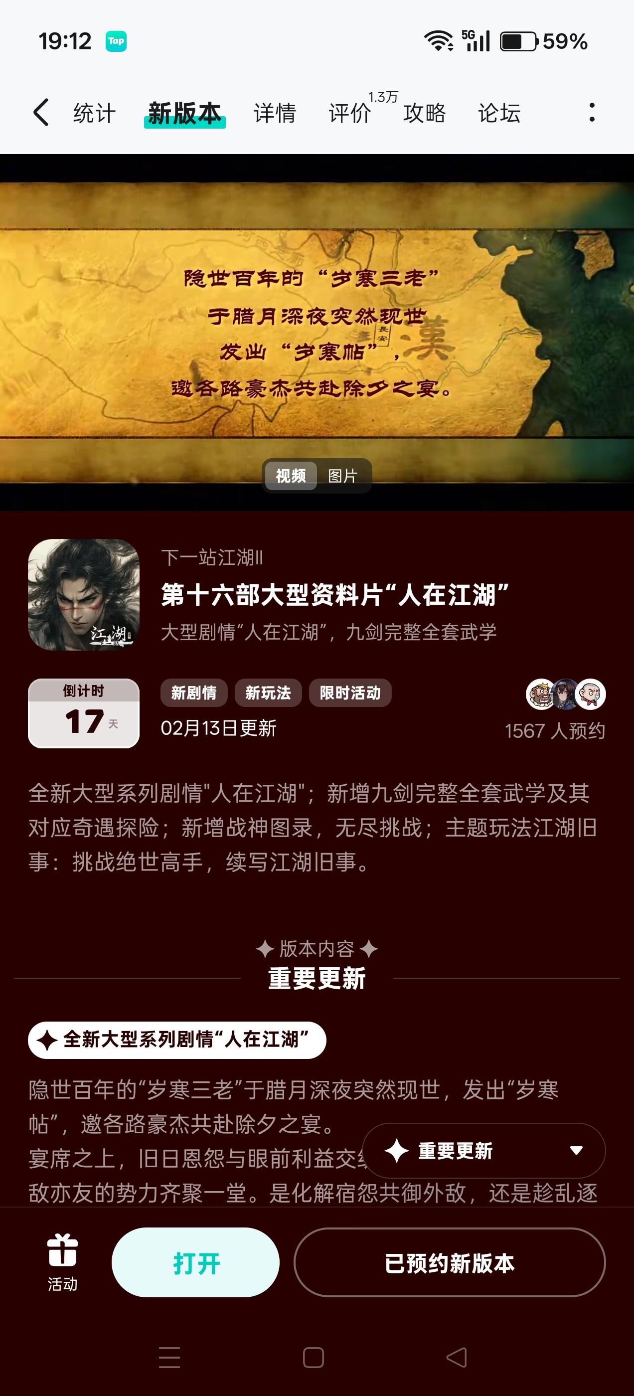 参与人在江湖预约活动免费获得武器特效和外观礼包 #下一站江湖Ⅱ #浅评一下