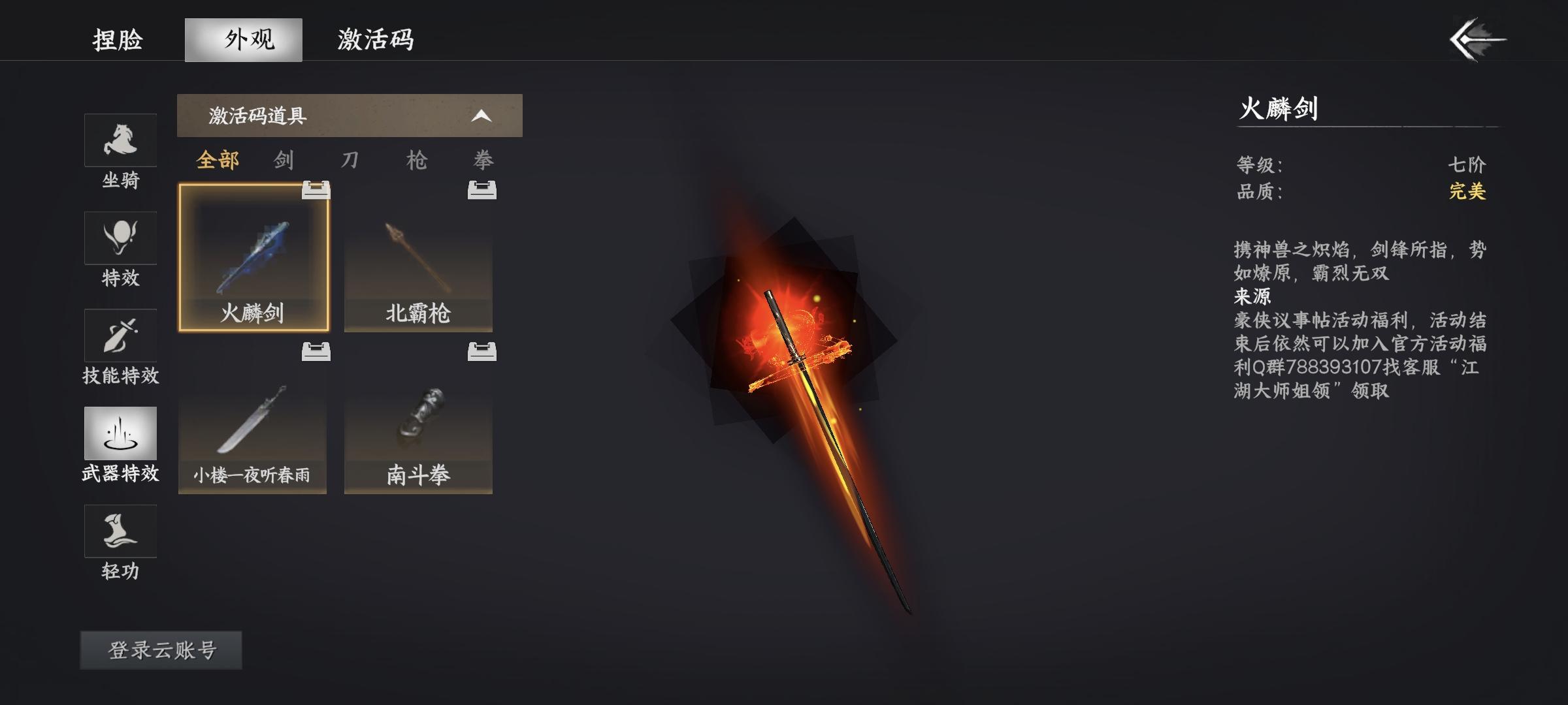 参与人在江湖预约活动免费获得武器特效和外观礼包