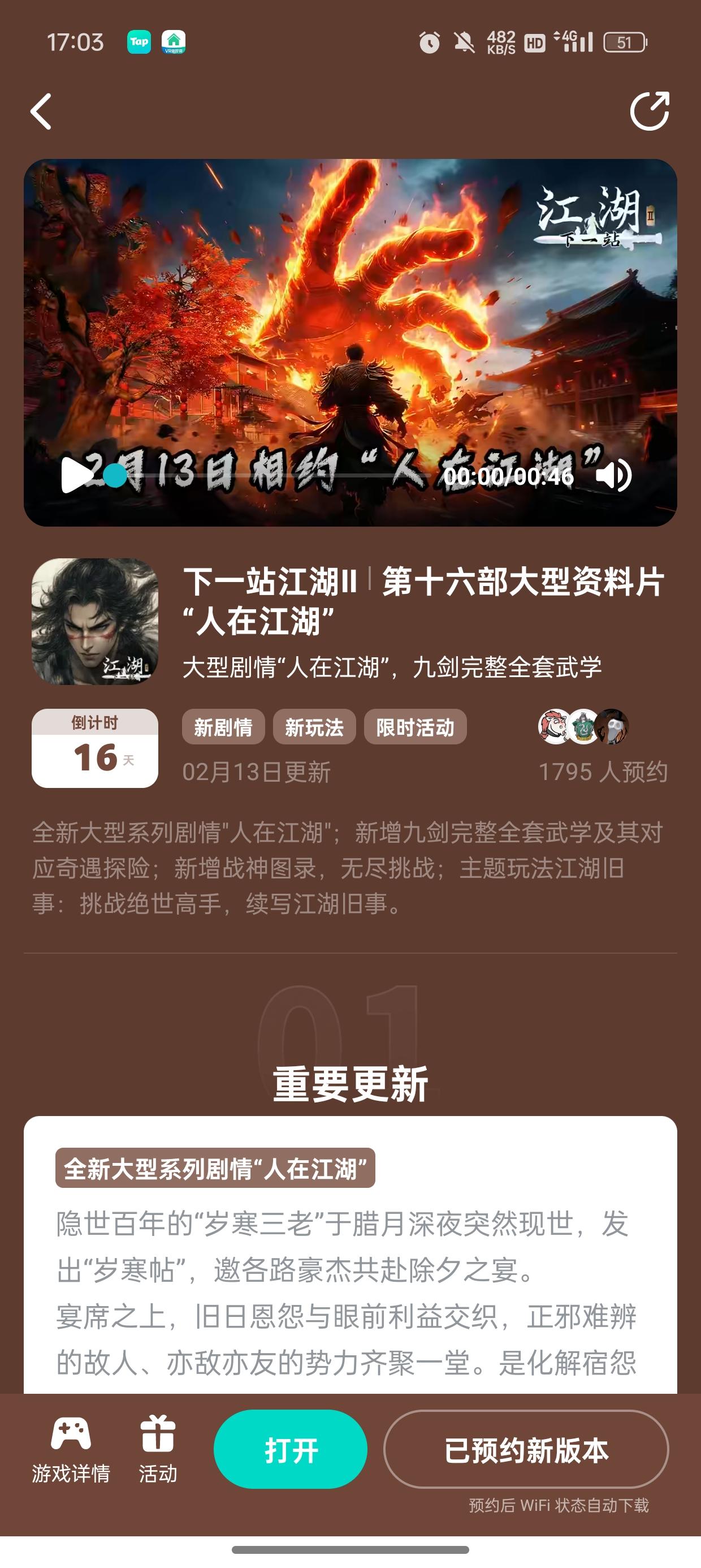 参与人在江湖预约活动免费获得武器特效和外观礼包