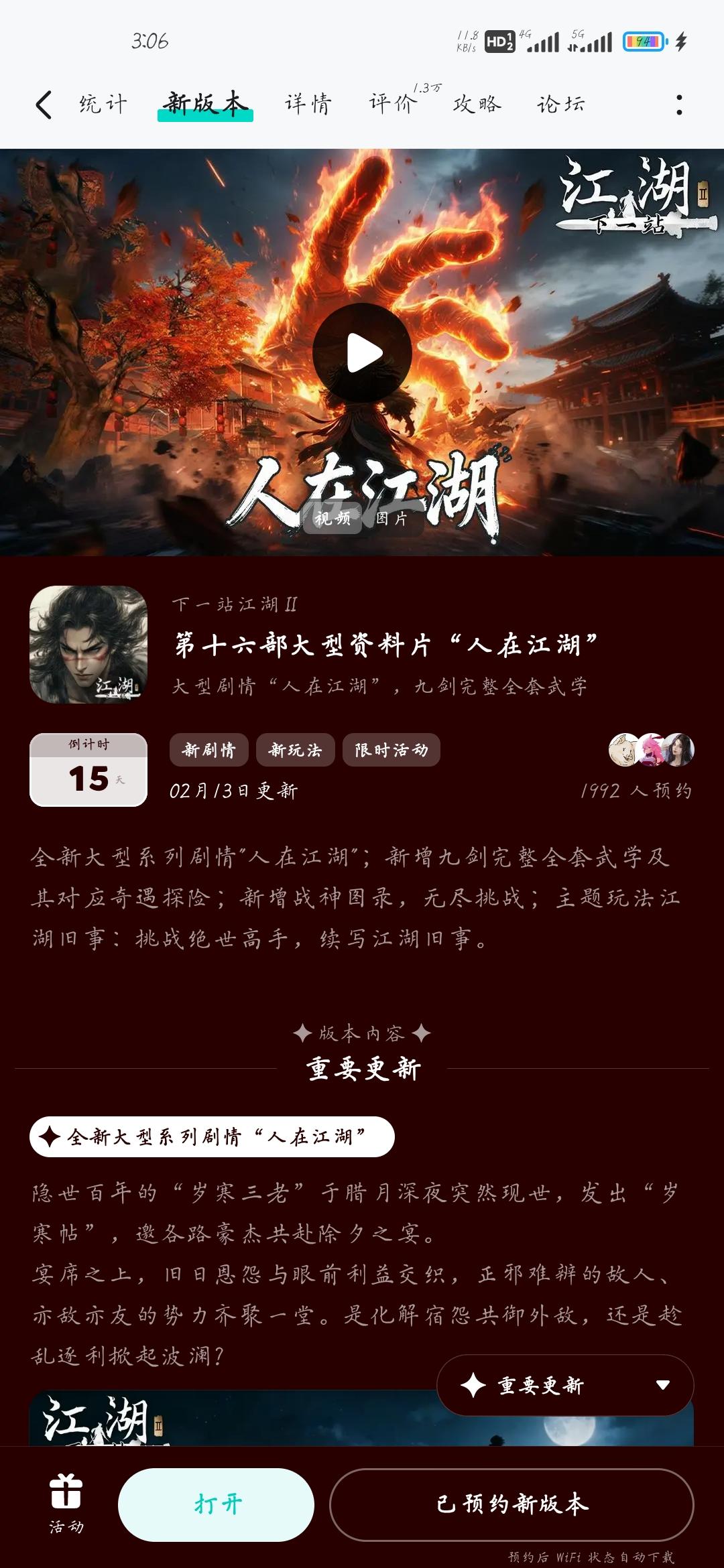 参与人在江湖预约活动免费获得武器特效和外观礼包