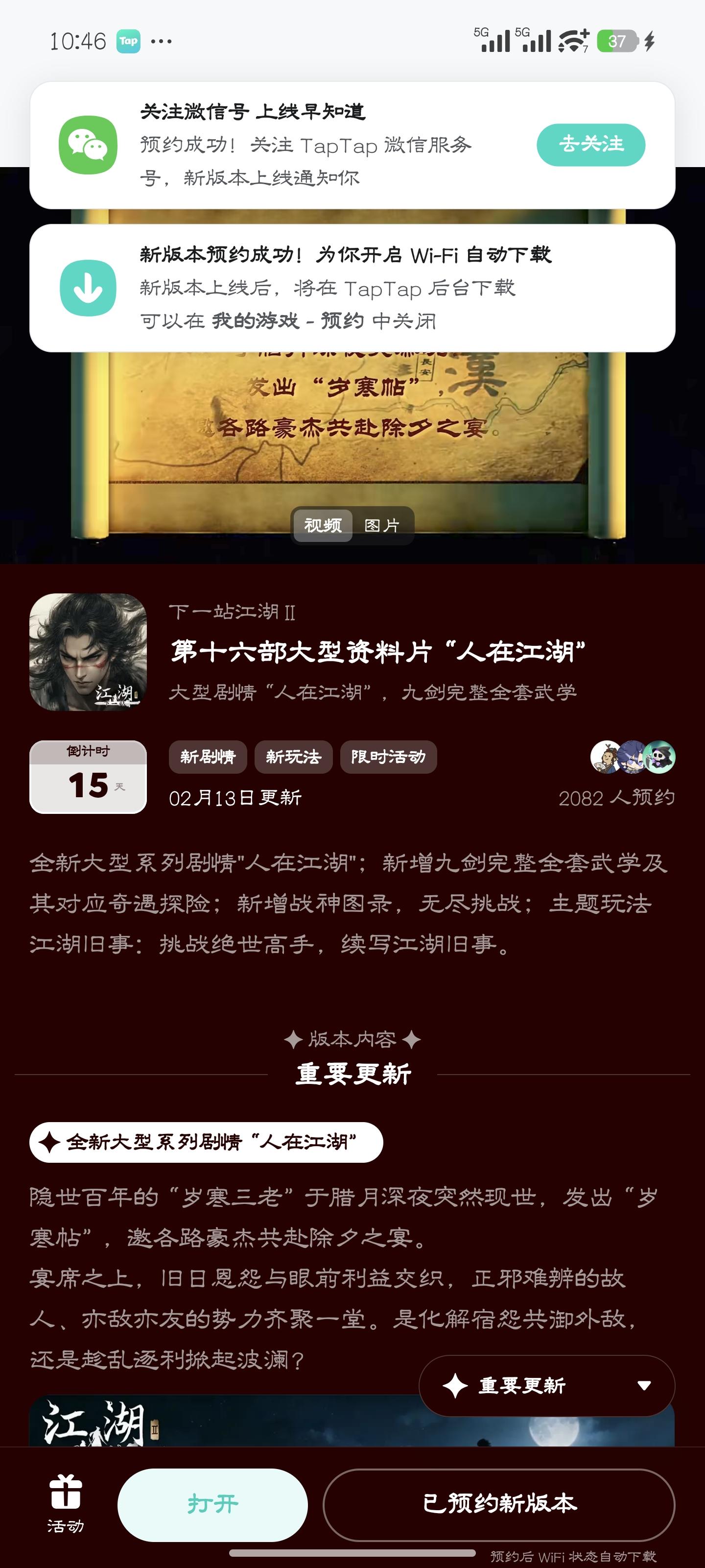 参与人在江湖预约活动免费获得武器特效和