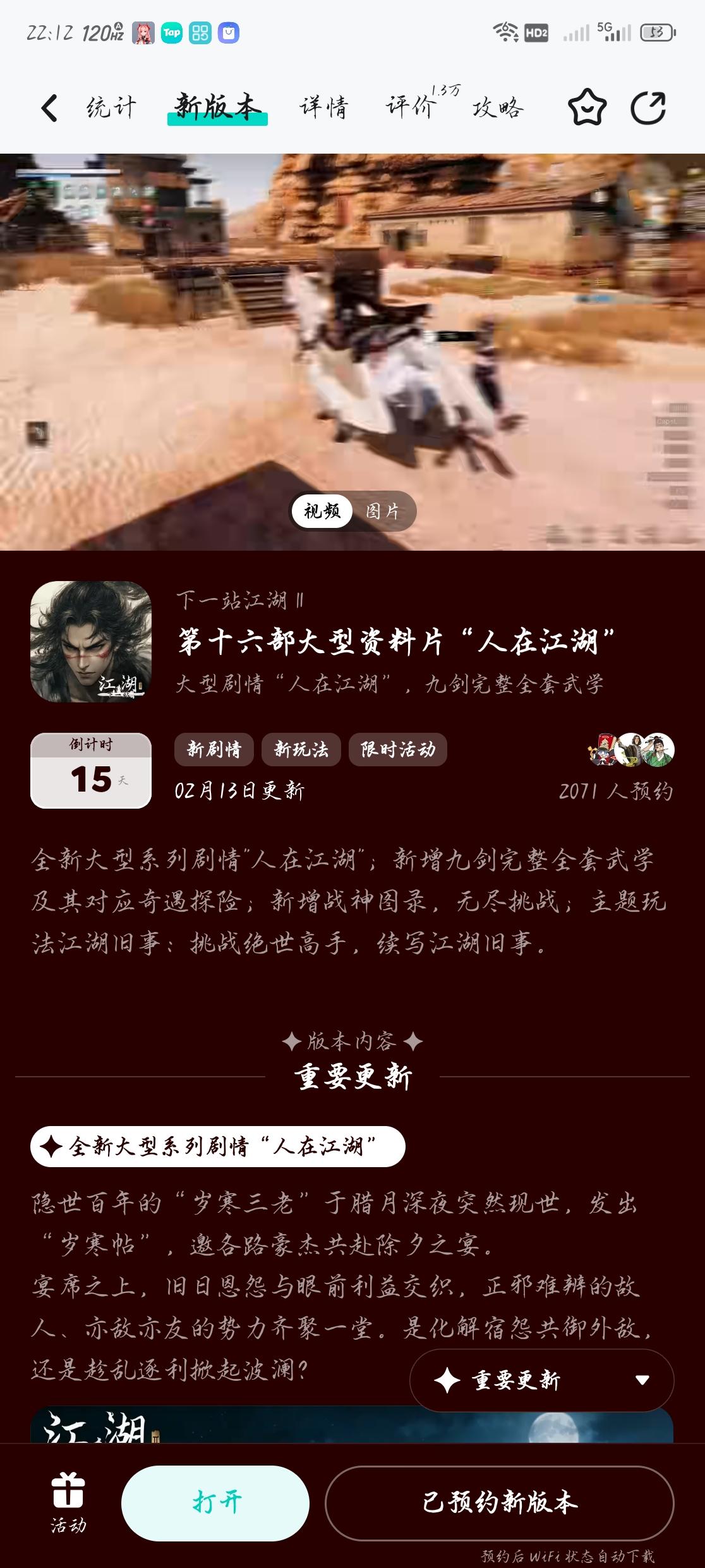 参与人在江湖预约活动免费获得武器特效和外