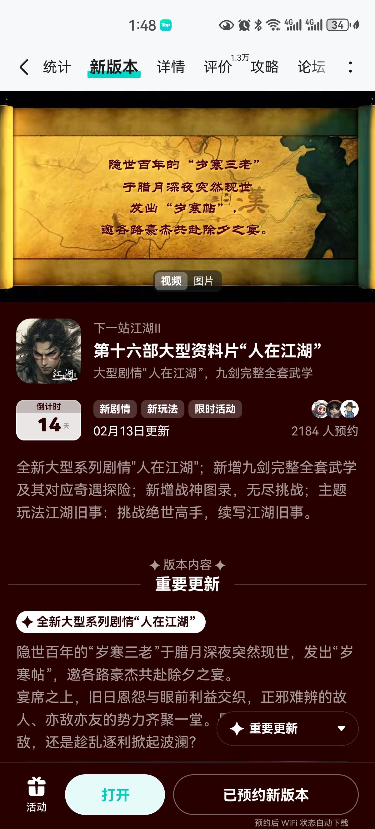 人在江湖预约活动免费获得武器特效和礼包