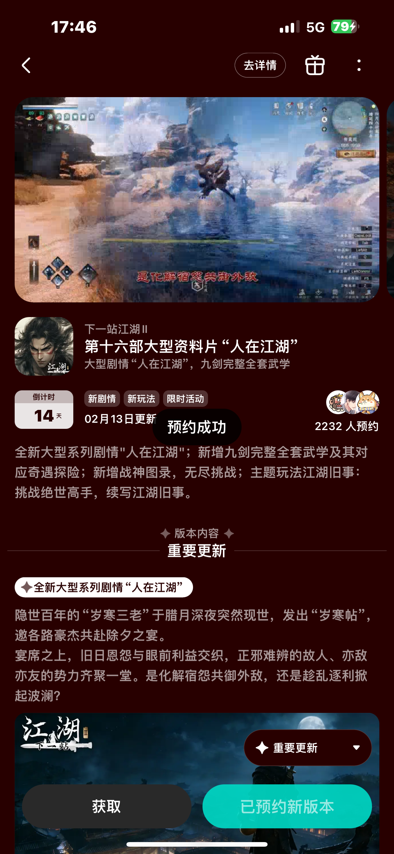 参与人在江湖预约活动免费获得武器特效和外观礼包