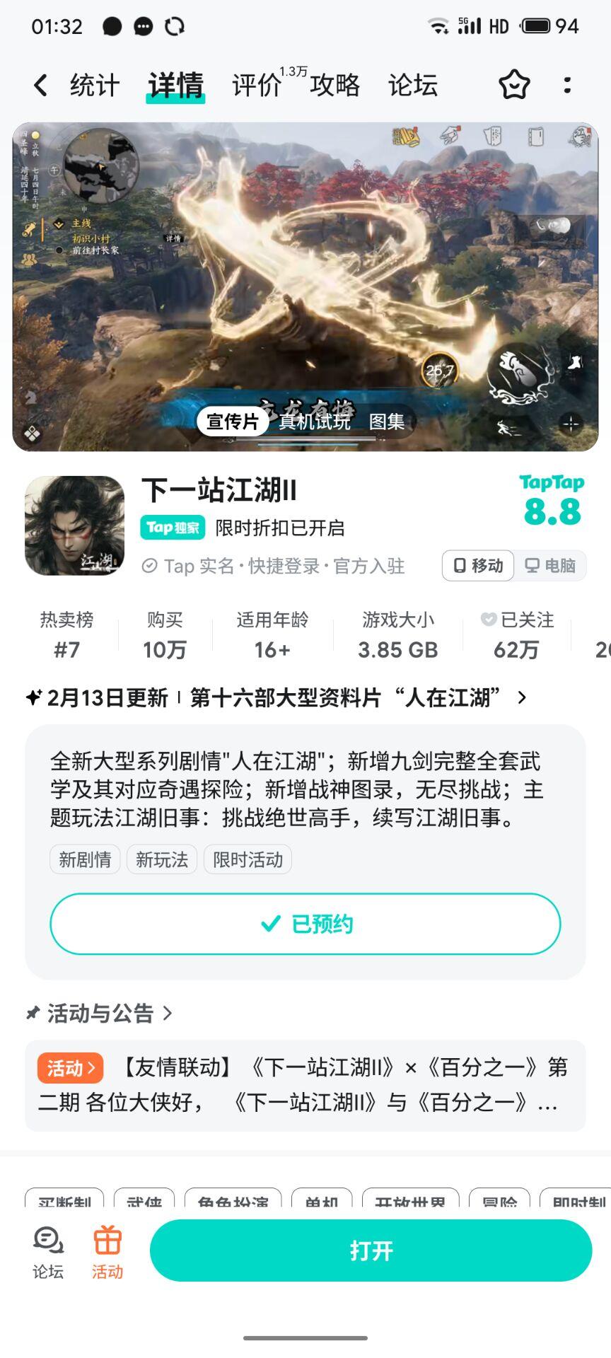 参与人在江湖预约活动