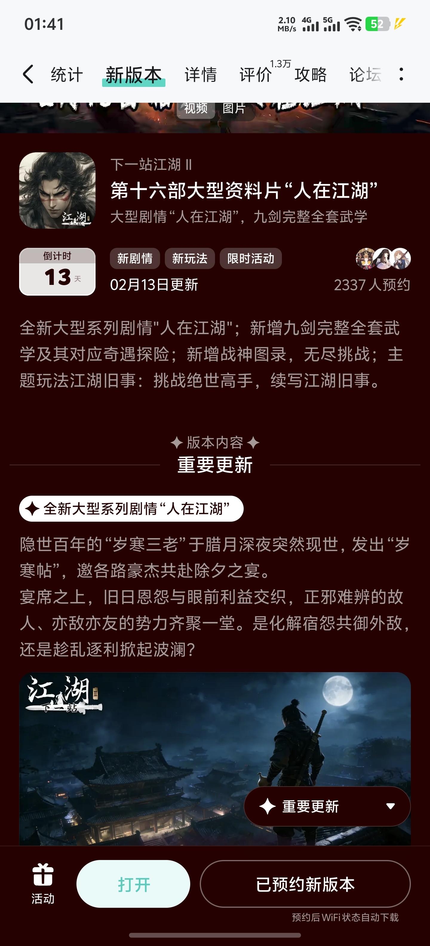 参与人在江湖预约活动免费获得武器特效和外观礼包