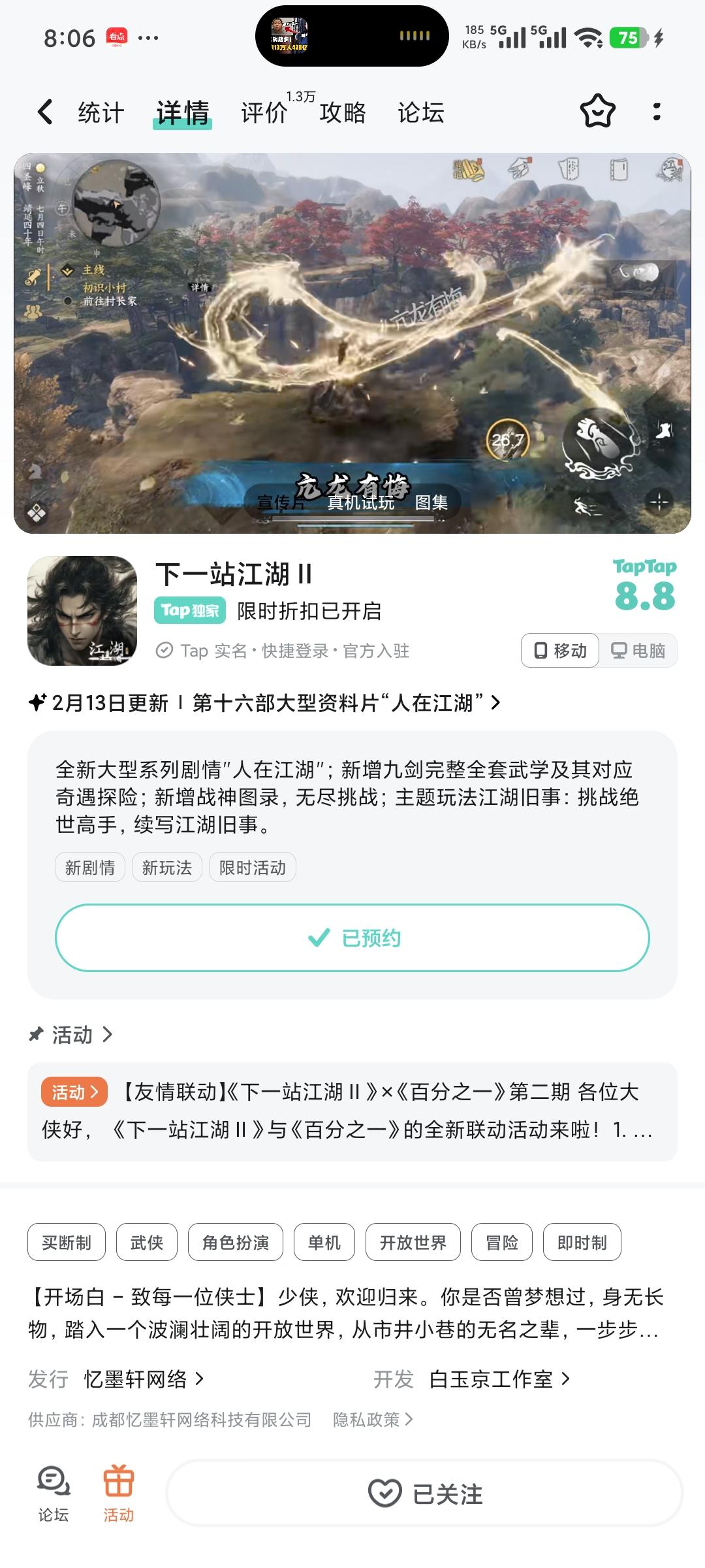 参与人在江湖预约活动免费获得武器特效和外