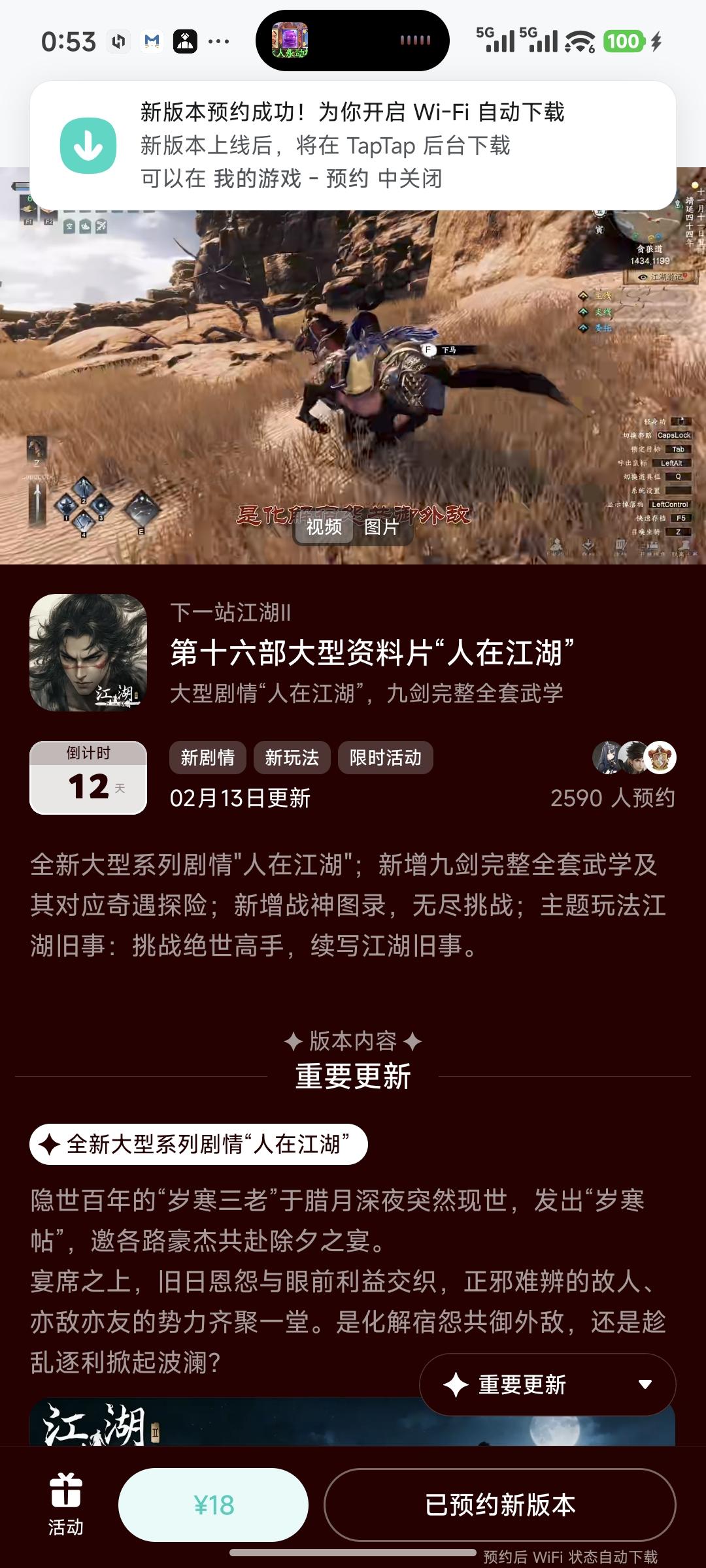 参与人在江湖预约活动免费获得武器特效和外观礼包