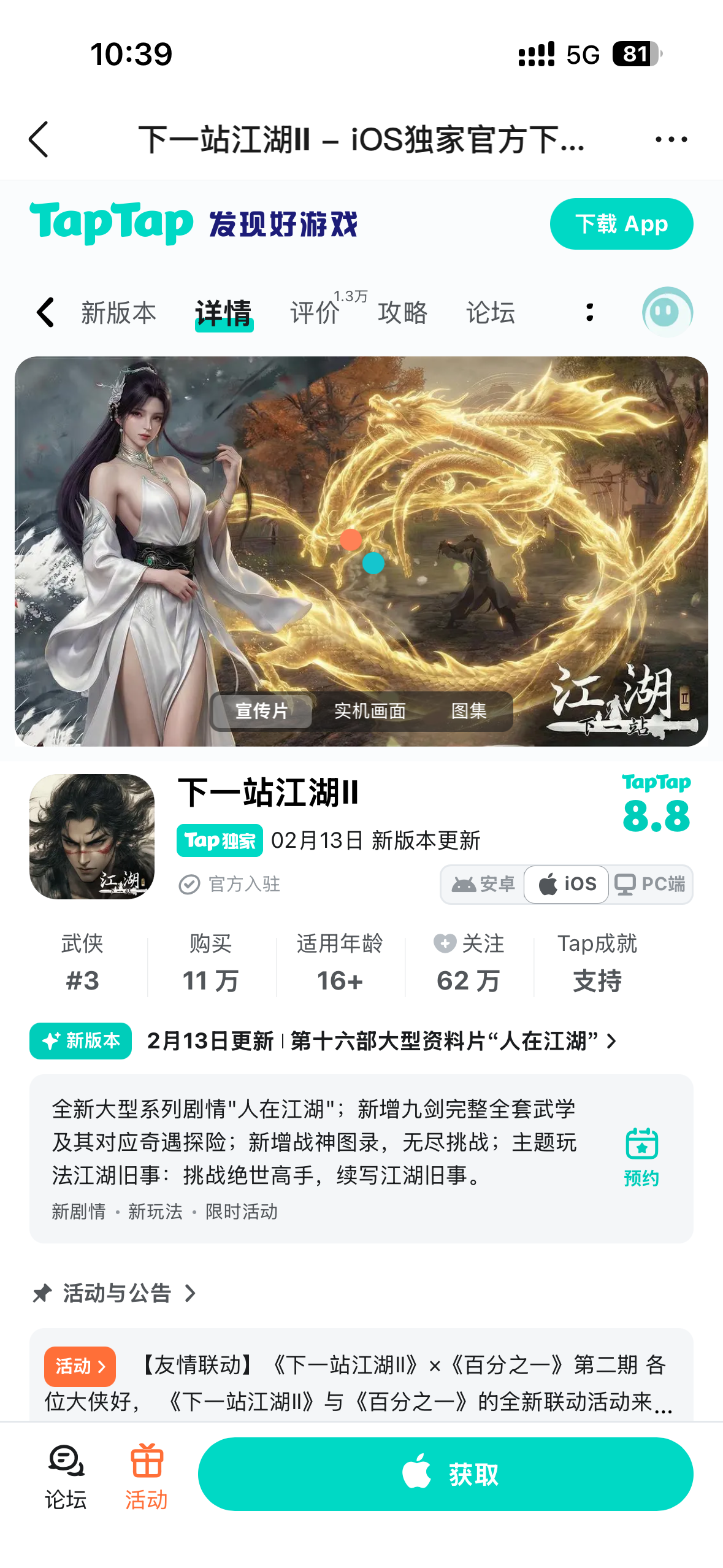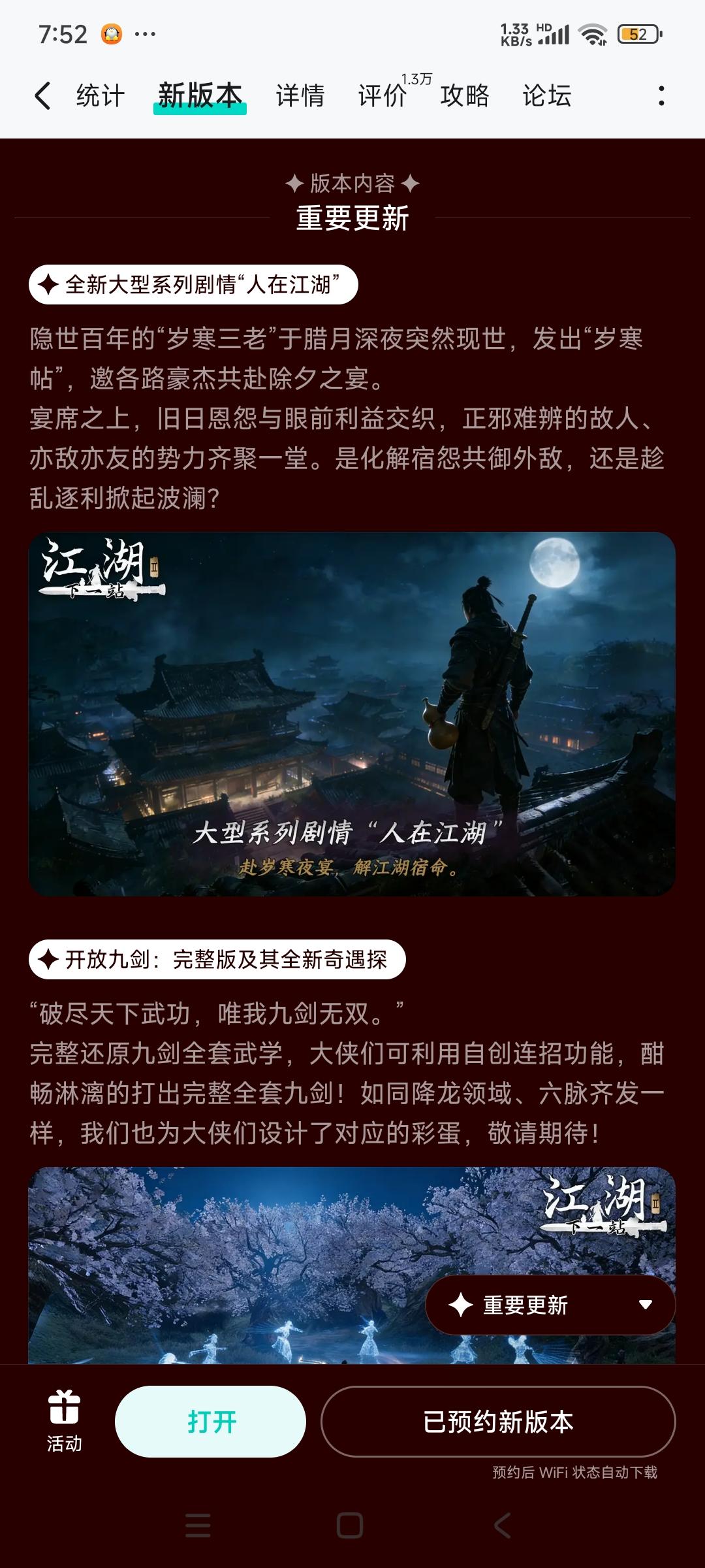 “参与人在江湖预约活 动免费获得武器特效和外观礼包”。