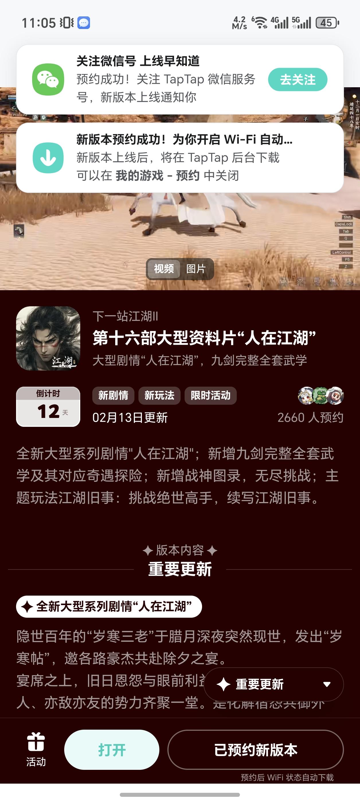 参与人在江湖预约活动免费获得武器特效和外观礼包