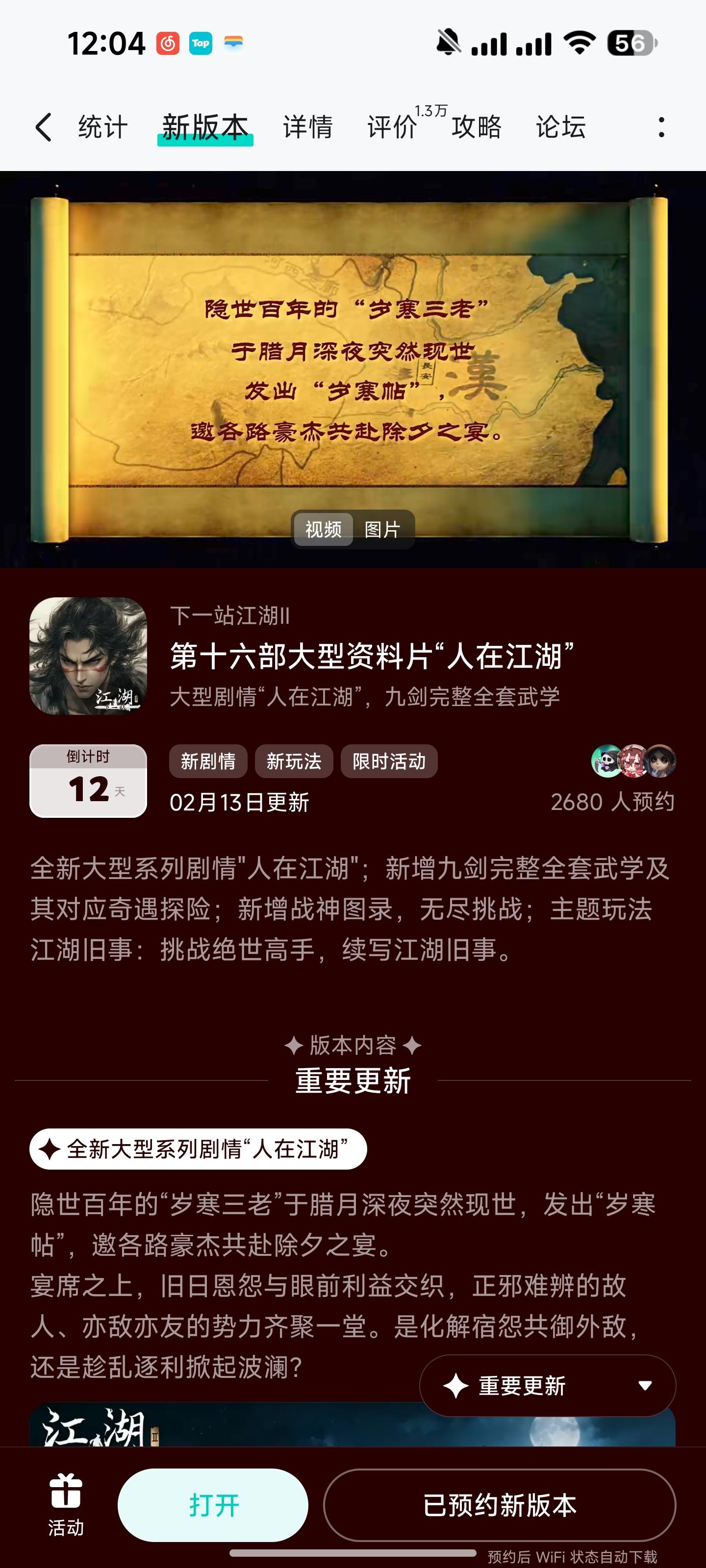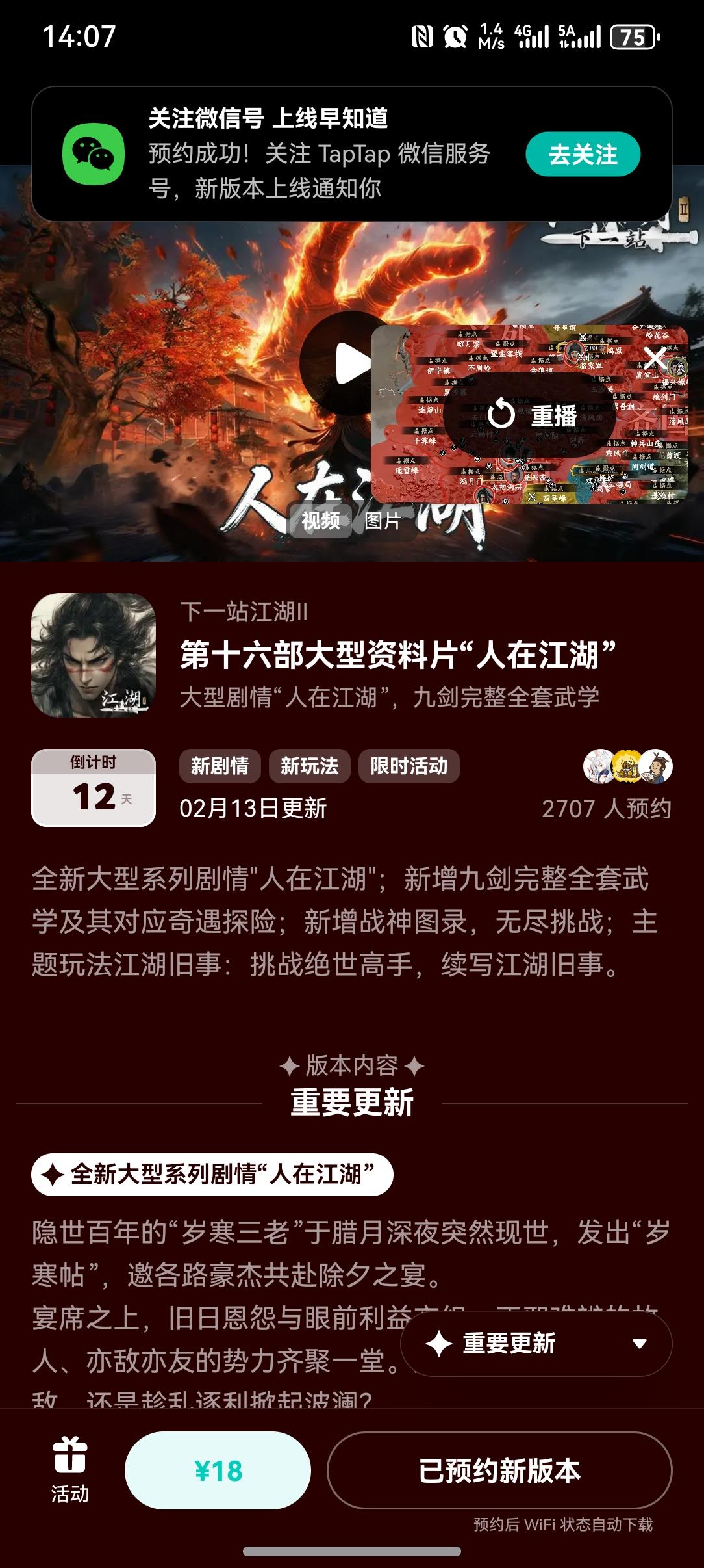 参与人在江湖预约活 动免费获得武器特效和