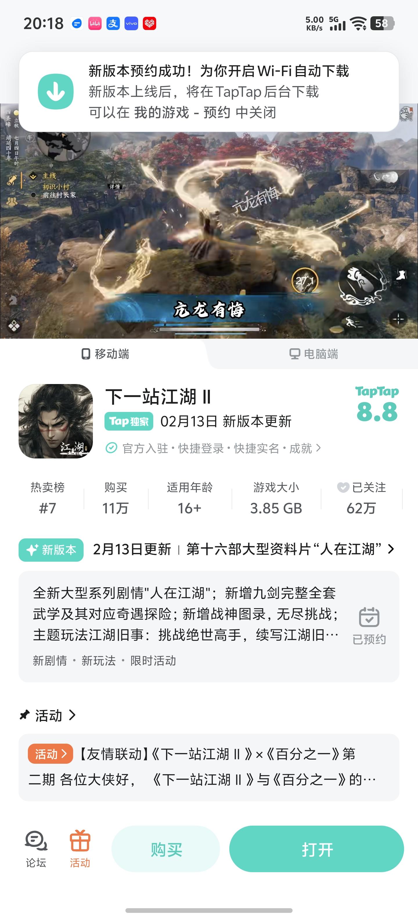 参与人在江湖预约活动