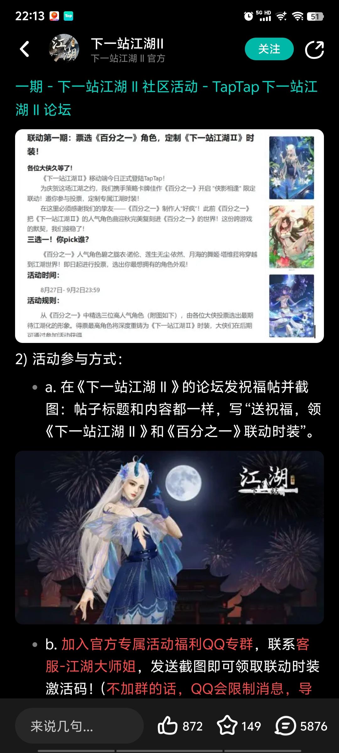 送祝福领下一站江湖Ⅱ和百分之一联动时装