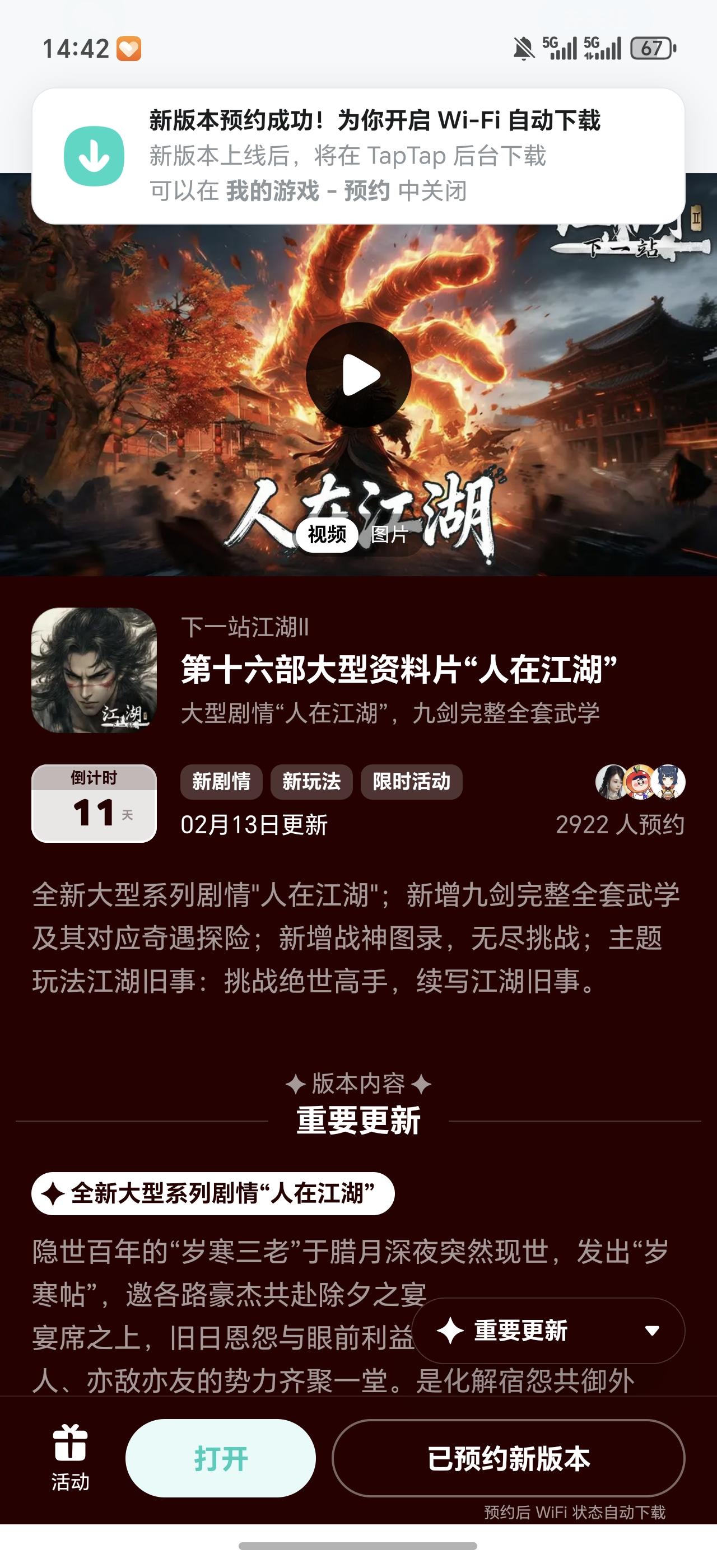 参与人在江湖预约活动
