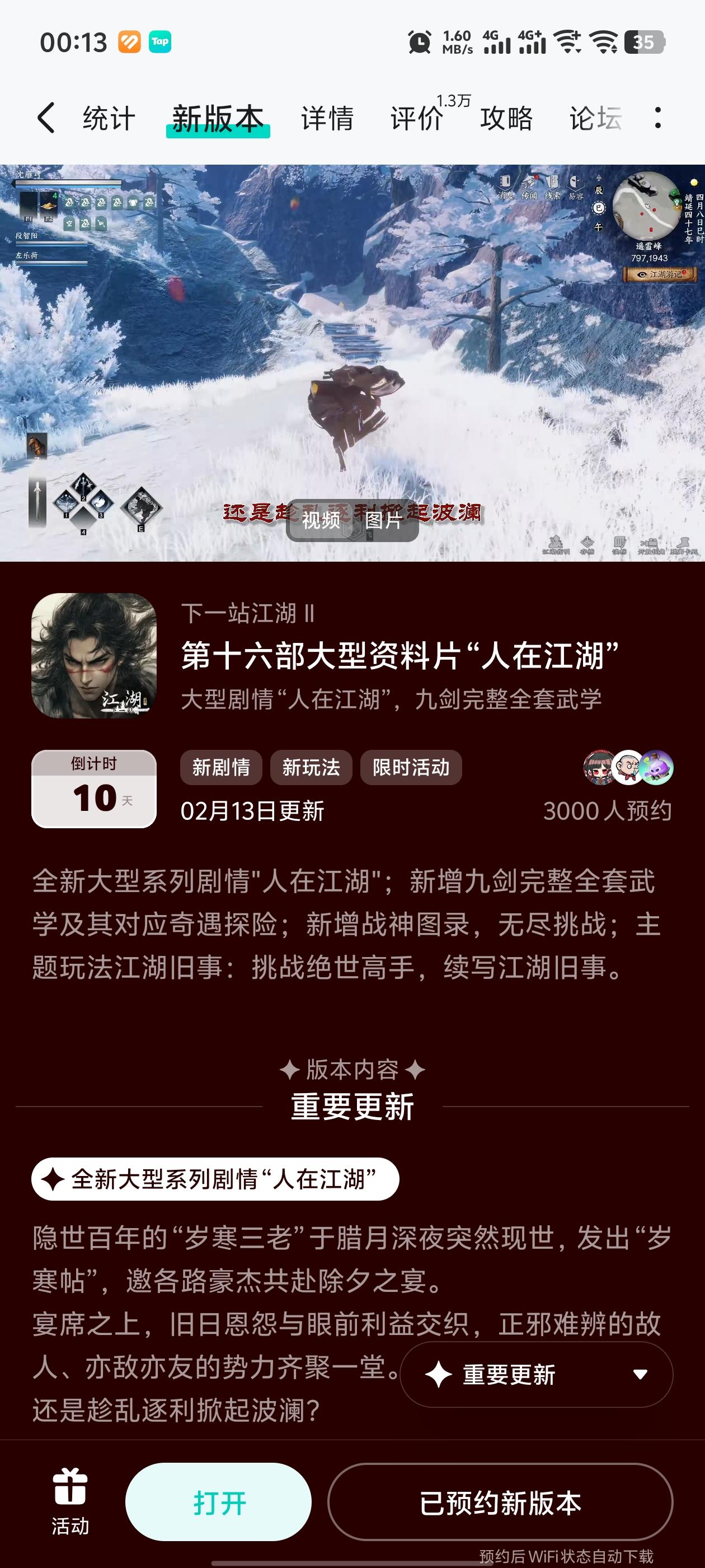参与人在江湖预约活动免费获得武器特效和外