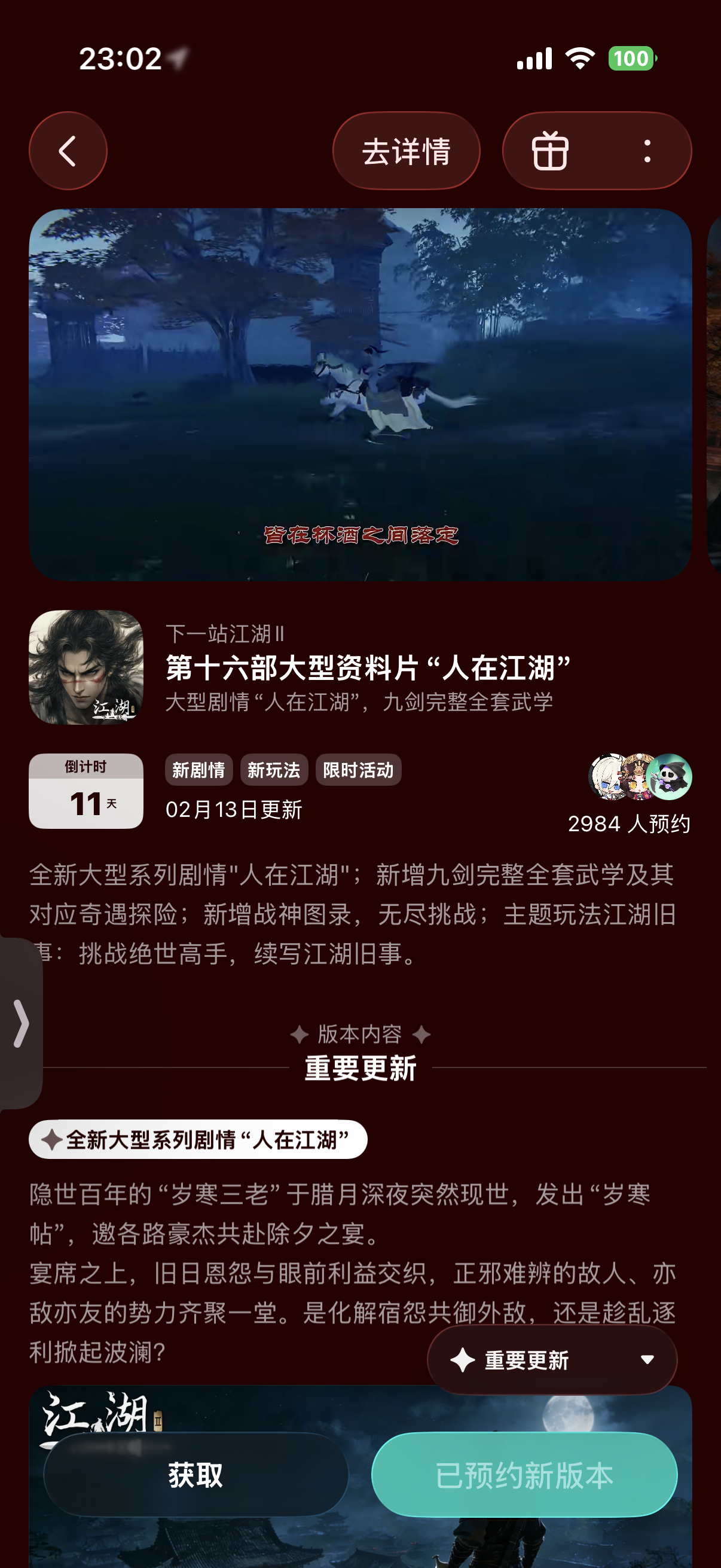 参与人在江湖预约活动免费获得武器特效和外观礼包