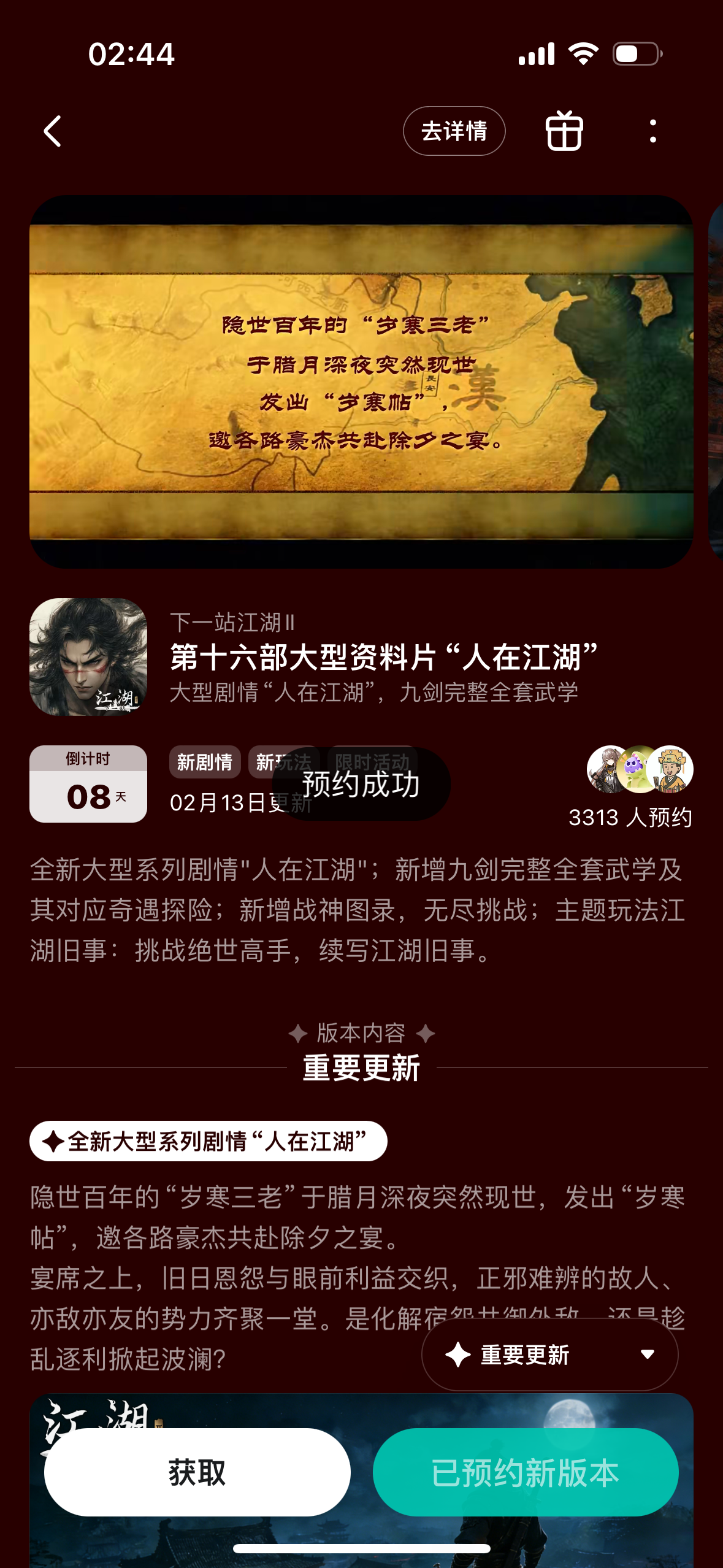 参与人在江湖预约活动免费获得武器特效和外观礼包 #下一站江湖Ⅱ