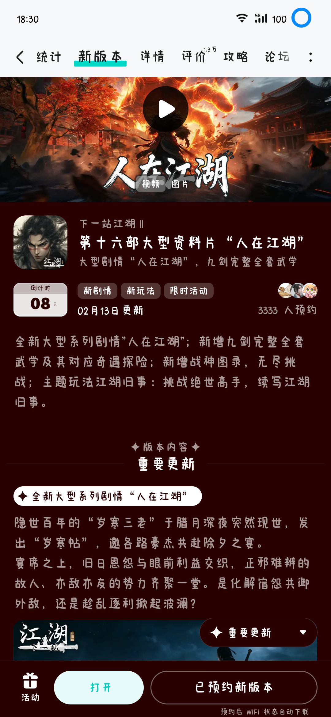 参与人在江湖预约活动免费获得武器特效和外观礼包。